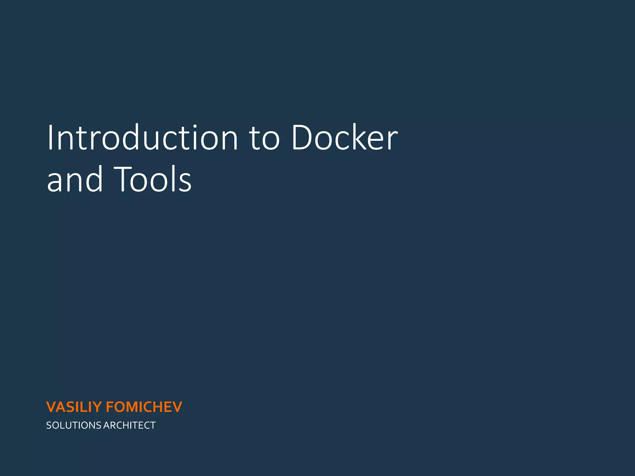 The document presents an introduction to Docker, emphasizing its benefits in modern development environments, particularly for Sitecore applications. It covers challenges in DevOps, the concept and advantages of containers over virtual machines, and highlights various configurations for running Mongo and Solr on Docker. Additionally, it discusses Docker's adoption trends, tools, and complementary technologies for simplifying and enhancing development and operations.