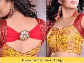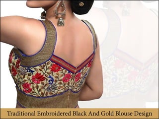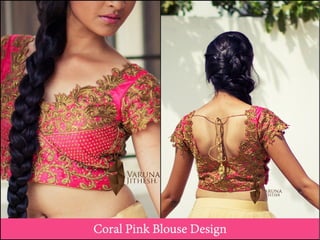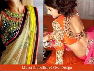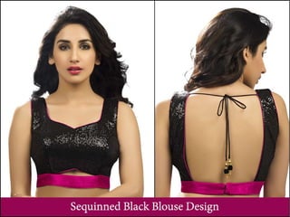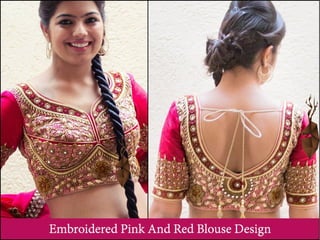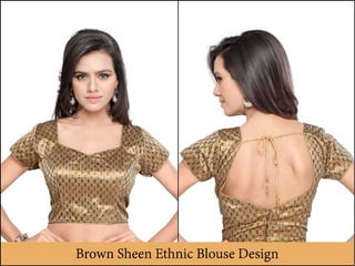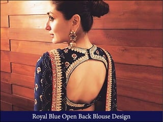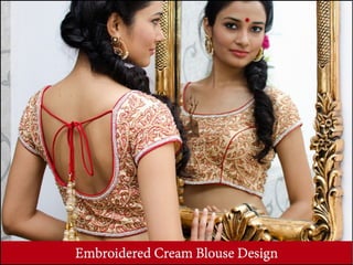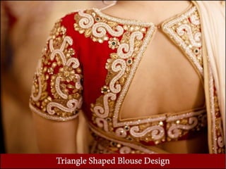 The document discusses various blouse back neck designs and patterns that are stylish options for brides. It provides brides with ideas for the back of their blouses to complement their wedding looks. The designs allow brides to showcase their personal style on their special day in three elegant and fashionable ways.