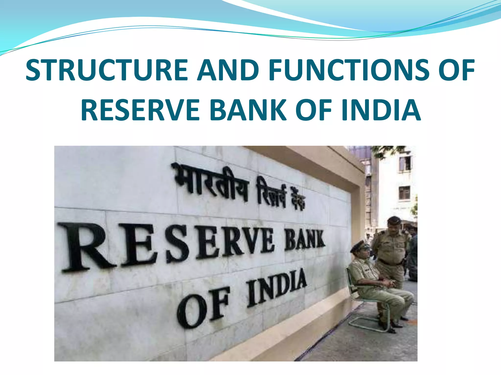 The Reserve Bank of India is the central bank of India established in 1935. It regulates banking, manages currency and monetary policy in India. It acts as a bank for the government and regulates commercial banks. It issues currency, manages foreign exchange reserves, implements monetary policy tools like repo rate, CRR, and SLR to regulate inflation and control money supply. It also oversees functions like licensing banks, inspecting banks, and managing clearing houses.