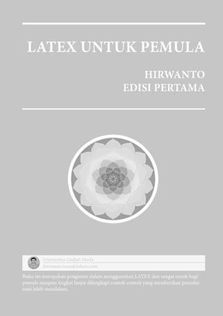 Buku 'LaTeX untuk Pemula' oleh Hirwanto memberikan panduan lengkap tentang penggunaan LaTeX, termasuk pengenalan sistem, perangkat yang diperlukan, serta penggunaan simbol matematis dan pengaturan tabel dan gambar. E-book ini bertujuan untuk membantu pemula memahami dan menggunakan LaTeX untuk membuat dokumen dengan notasi matematis yang indah. Penulis juga menjelaskan perkembangan sistem LaTeX dan aplikasinya dalam berbagai bidang akademik dan non-akademik.