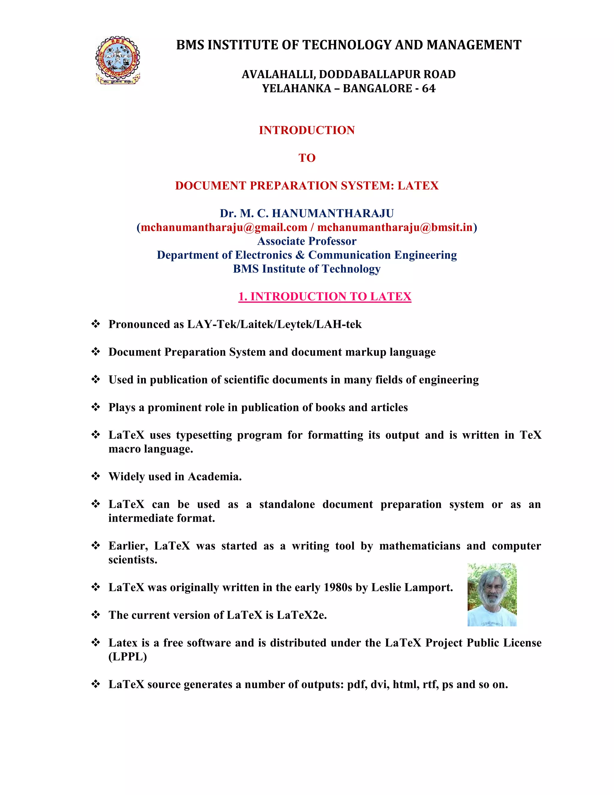 This document provides an introduction to LaTeX, a document preparation system. It discusses how LaTeX allows authors to focus on content over visual formatting, is widely used in academia, and provides numerous features for typesetting mathematical and scientific documents. Installation instructions and examples of basic LaTeX code for formatting equations are also included.