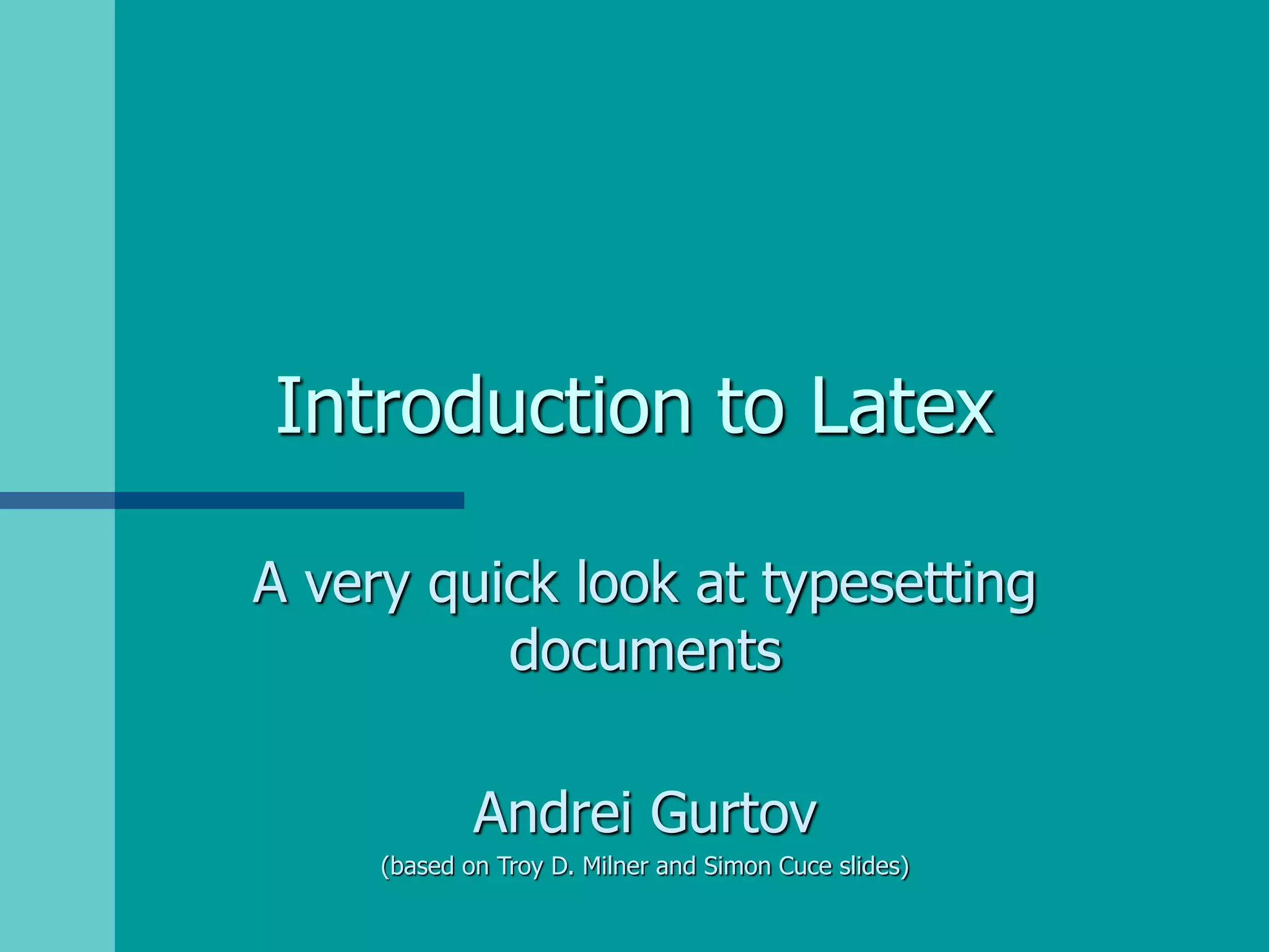 Introduction to Latex Avery quick look at typesetting documents Andrei Gurtov (based on Troy D. Milner and Simon Cuce slides)