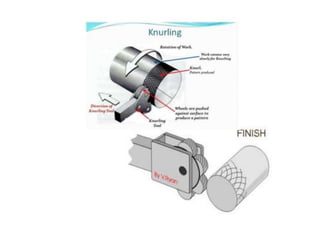 The document provides information on the history and evolution of lathe machines. It describes early lathe models that were powered manually like the strap lathe, bow lathe, and pole lathe. It then discusses more advanced lathes that used mechanical power sources like the treadle lathe and lathes powered by a great wheel. The document also outlines the main components of a lathe like the headstock, spindle, tailstock, carriage, and tooling. It provides details on workholding devices, lathe operations, and different types of lathes used for various applications.