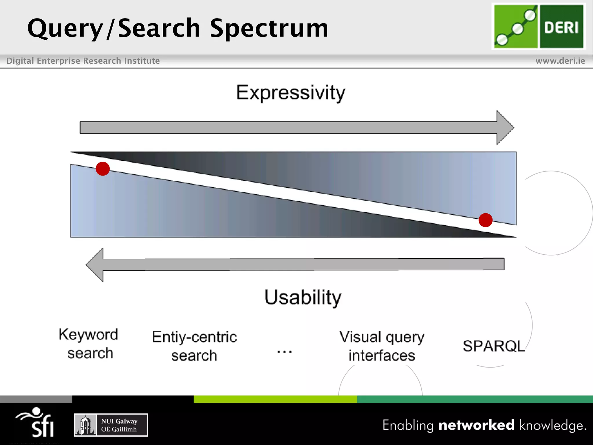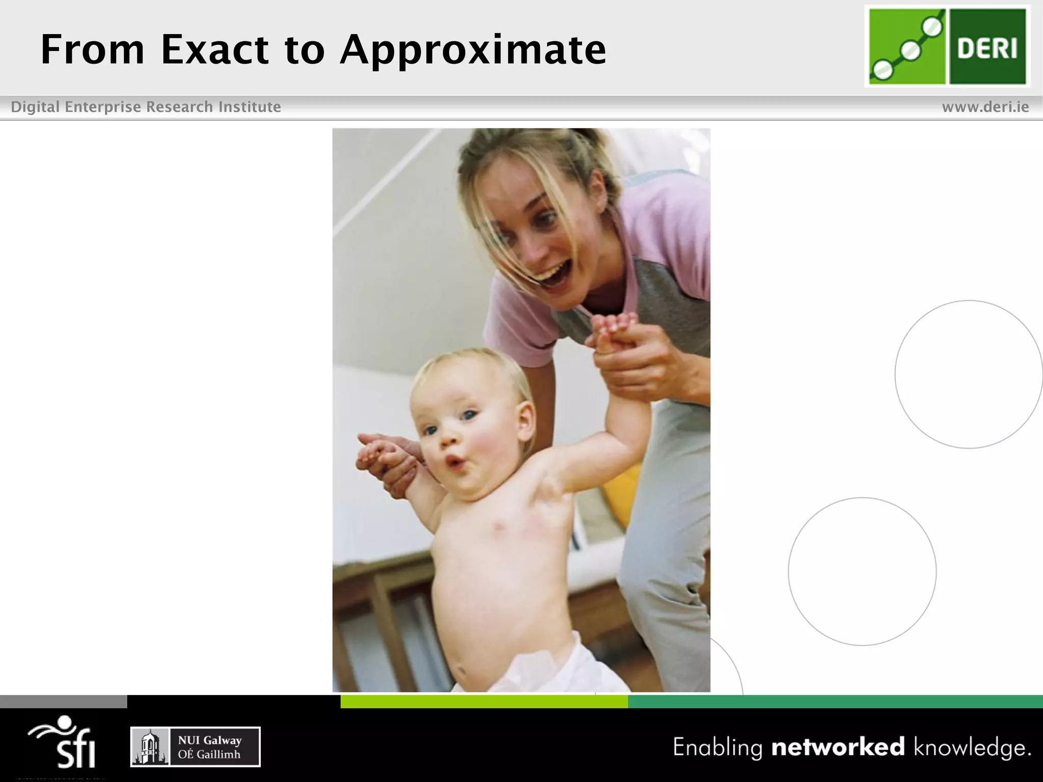 The document discusses the vision of the Semantic Web and how it has evolved since 2001. It describes how Linked Data has helped address earlier issues with consistency and scalability by providing a structured data representation at web scale. It also discusses how natural language processing, information retrieval, and distributional semantics can help bridge the gap between structured Linked Data and flexible natural language by semantically matching queries to knowledge graphs. The document concludes by outlining semantic application patterns that can be used to build intelligent systems by maximizing knowledge, allowing dynamic databases, and incorporating user feedback.