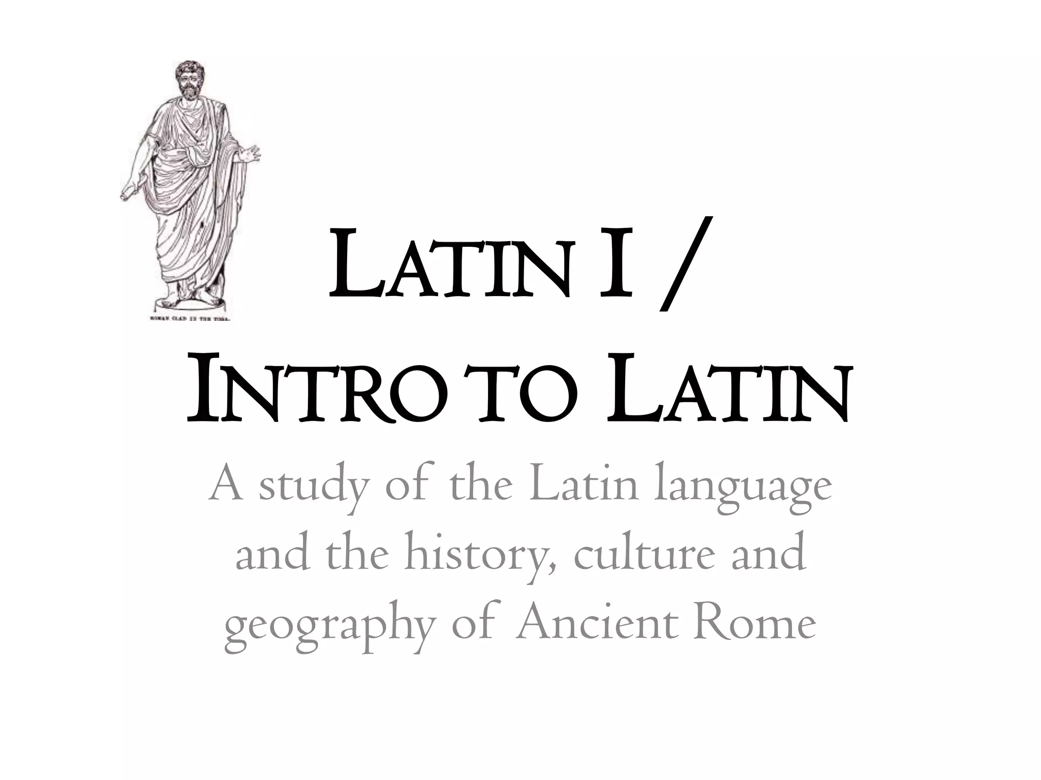 This document provides an overview of a Latin I course, including why students take Latin, where Latin is seen in modern language and culture, basic Latin grammar concepts like nouns and verbs, sample vocabulary words, and a brief introduction to pronunciation. Key topics covered include how Latin aids in learning other languages, examples of Latin influence in medical terms, planets, and more. Basic noun declension and verb conjugation patterns are demonstrated.