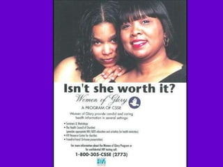 The document discusses a 2008 focus group of Latina females in Kansas City, MO. The focus group looked at general images in commercial ads and social marketing. They provided feedback on social marketing approaches.