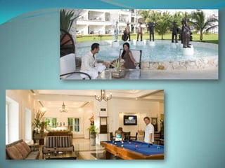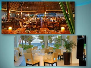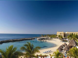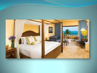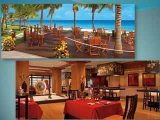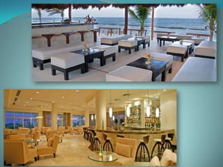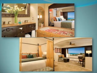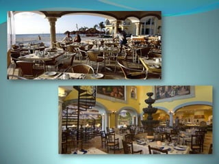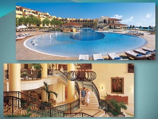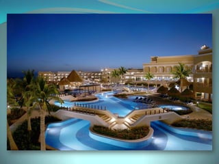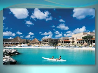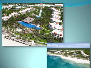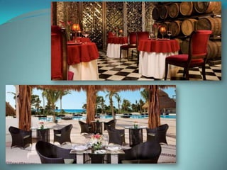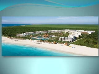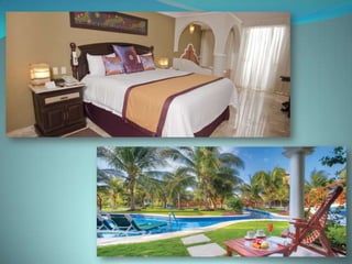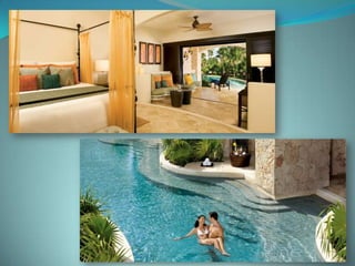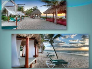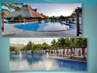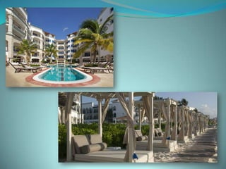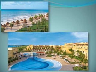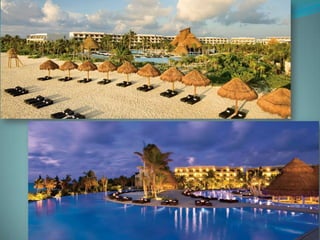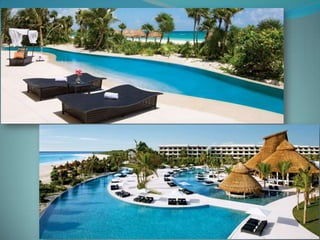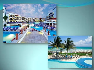This document provides information about vacation package options in Riviera Maya, Mexico. It includes details about two all-inclusive resort options - El Dorado Royale and Secrets Capri Riviera Cancun. For each resort, it outlines amenities, room types, dining options, bars and entertainment available. Pricing information for a 56 night stay at each resort in August is also provided. Travelers are advised that August is the rainy season in Riviera Maya and travel protection is recommended.