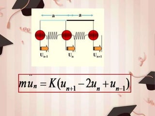 1) The document discusses lattice dynamics and lattice vibrations, focusing on 1D monoatomic and diatomic crystal chains.