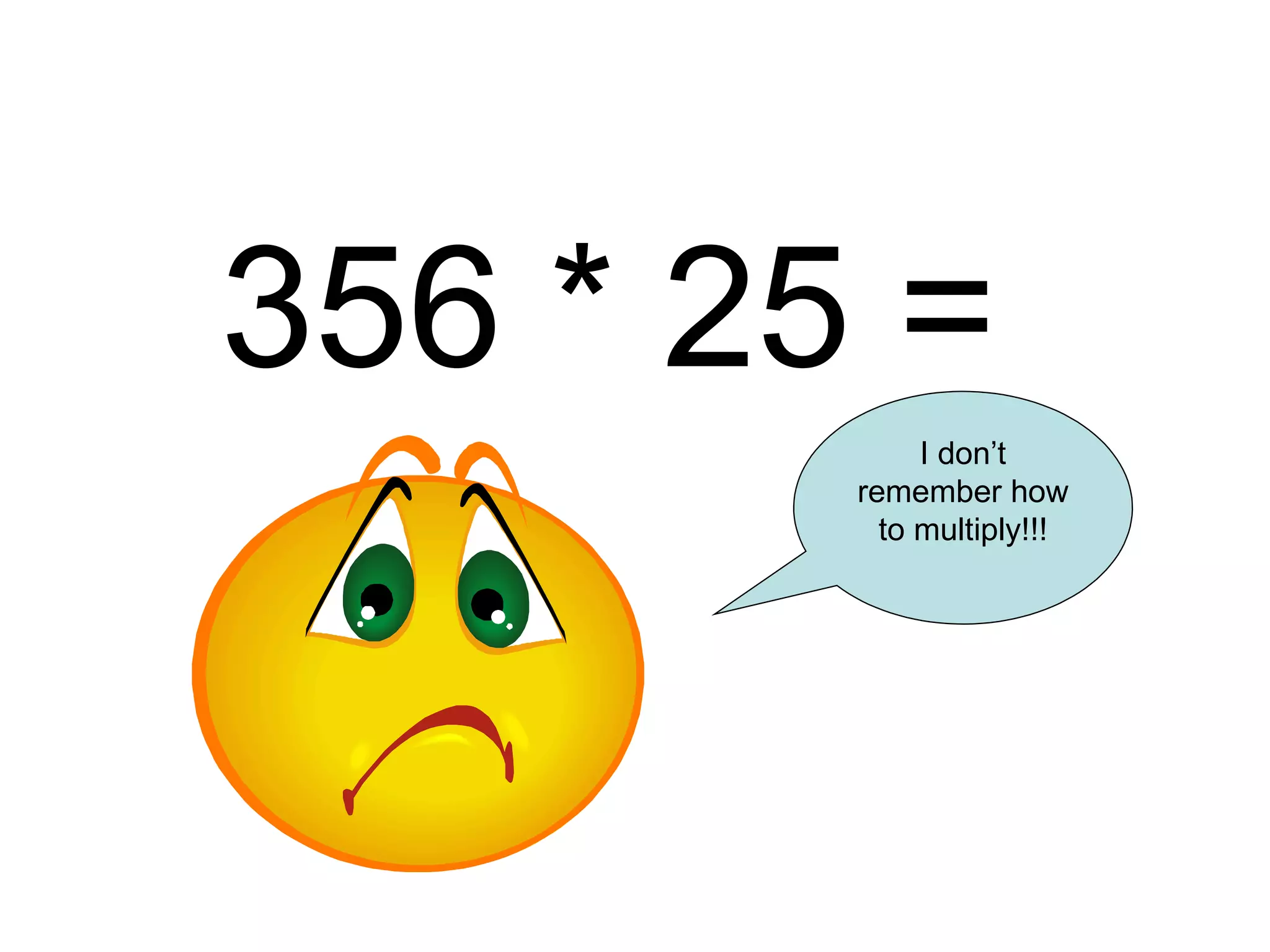 The document provides step-by-step instructions for multiplying 356 by 25 using the lattice method. It explains how to set up a 2x3 grid based on the numbers, fill in the grid by multiplying the digits and placing them in the intersecting lines, then adding the diagonals and carrying numbers to get the final solution of 8,900.