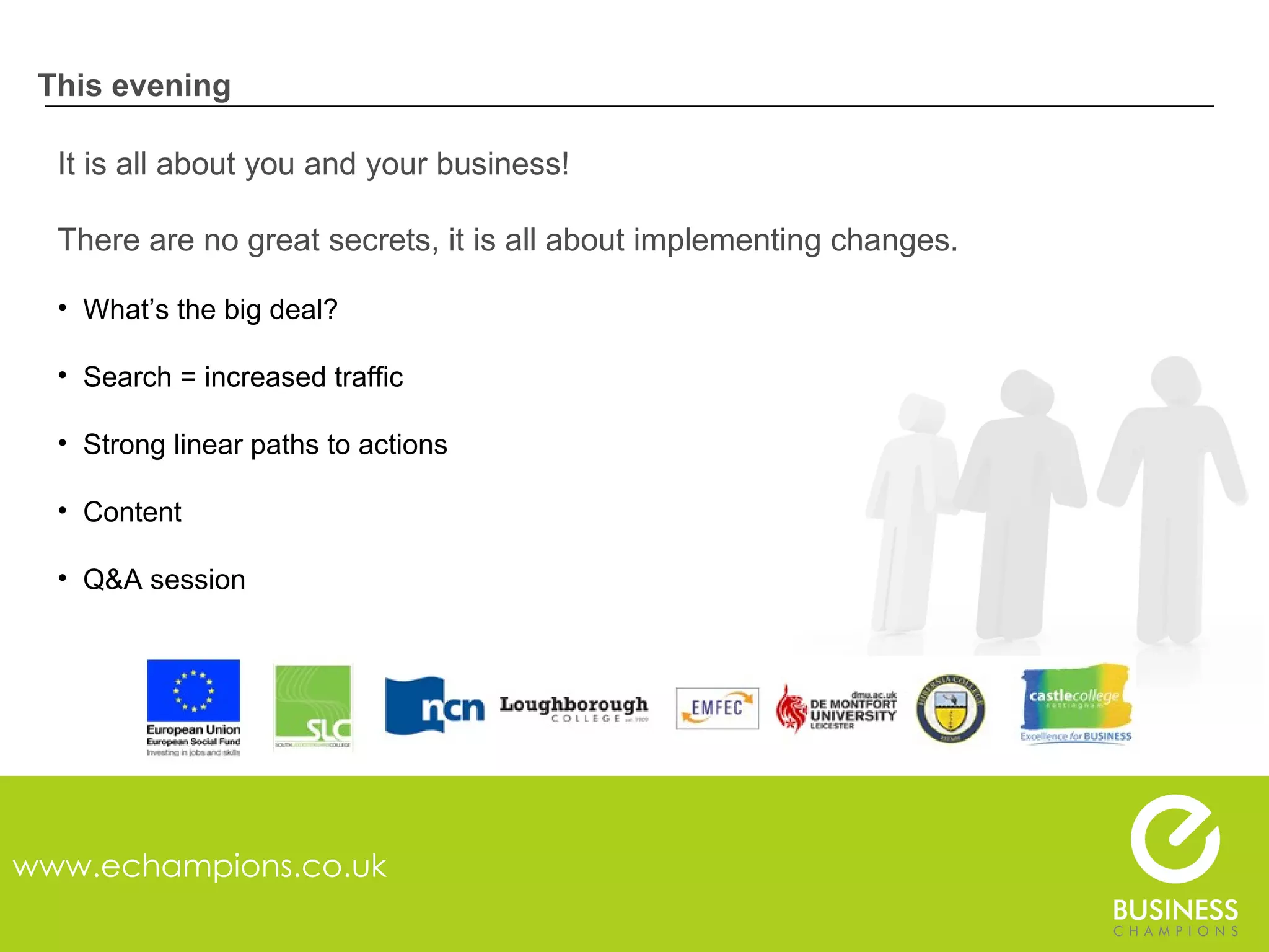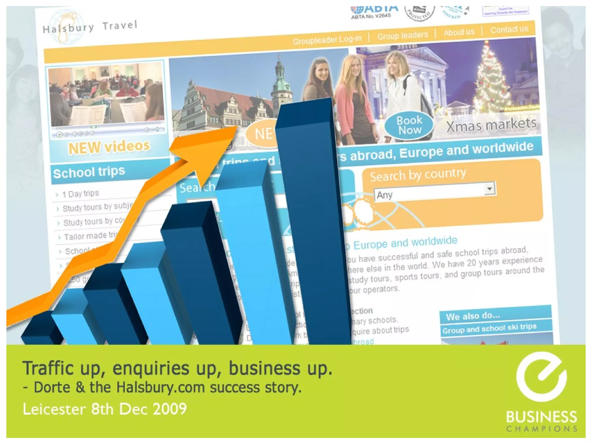 The document discusses strategies for improving a business's website to increase traffic, conversions, and sales. It recommends implementing small changes to search engine optimization, content, and calls to action to direct more relevant visitors to the right product pages and encourage purchases. Specific tips included adding pricing information, "enquire now" buttons, and offering free samples to improve conversions from 0.4% to 6.4%. It stresses the importance of regularly reviewing site metrics and goals to ensure the site is achieving its objectives.