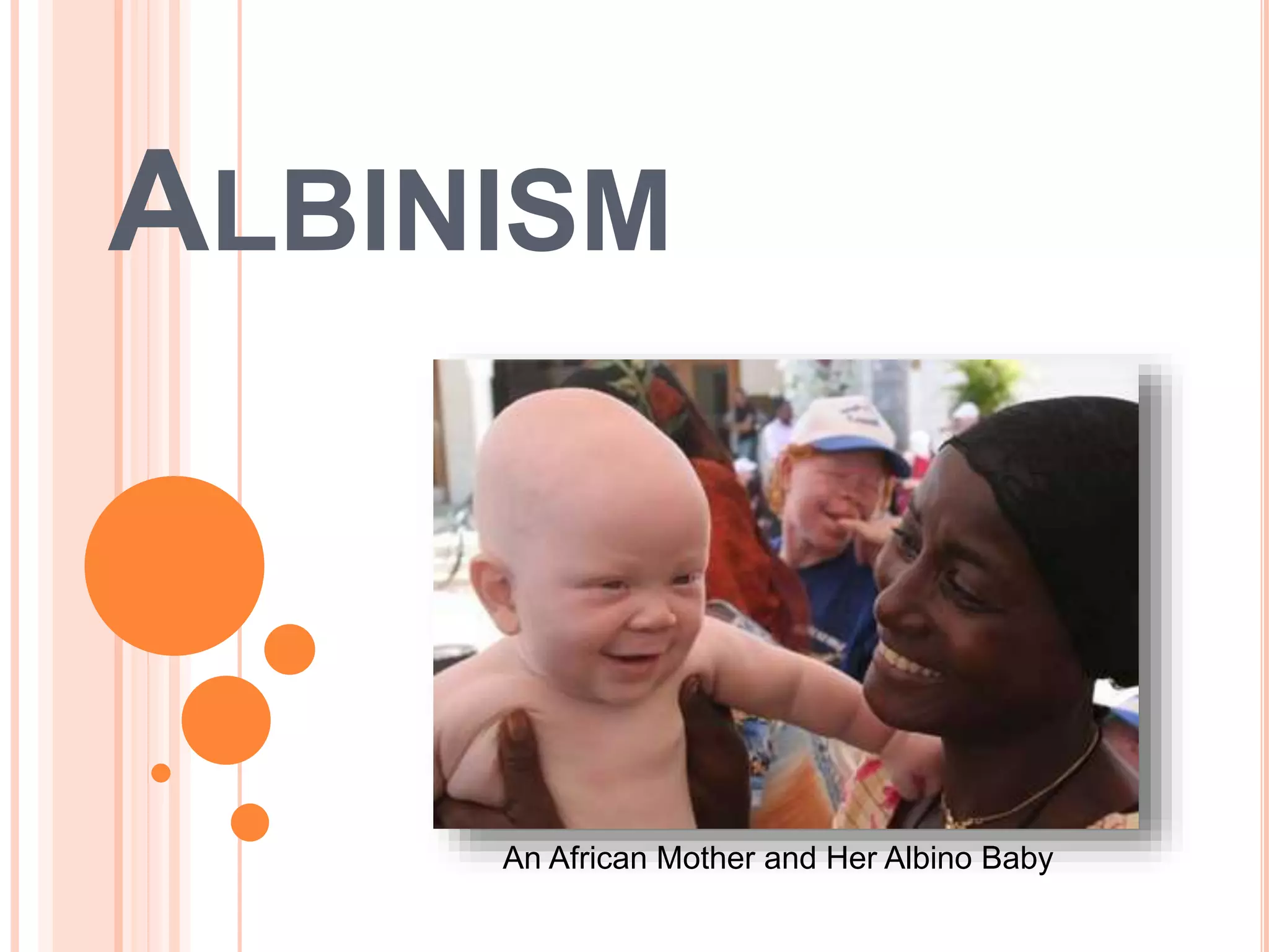 Albinism is a genetic mutation caused by a recessive gene that results in little to no melanin pigment in the skin, hair, and eyes. It causes pale skin, white hair, eye problems like sensitivity to light and poor vision. Albinism is present at birth and lifelong, with no cure or prevention other than protecting the skin from sun exposure and treating eye issues. It can affect any race or gender.