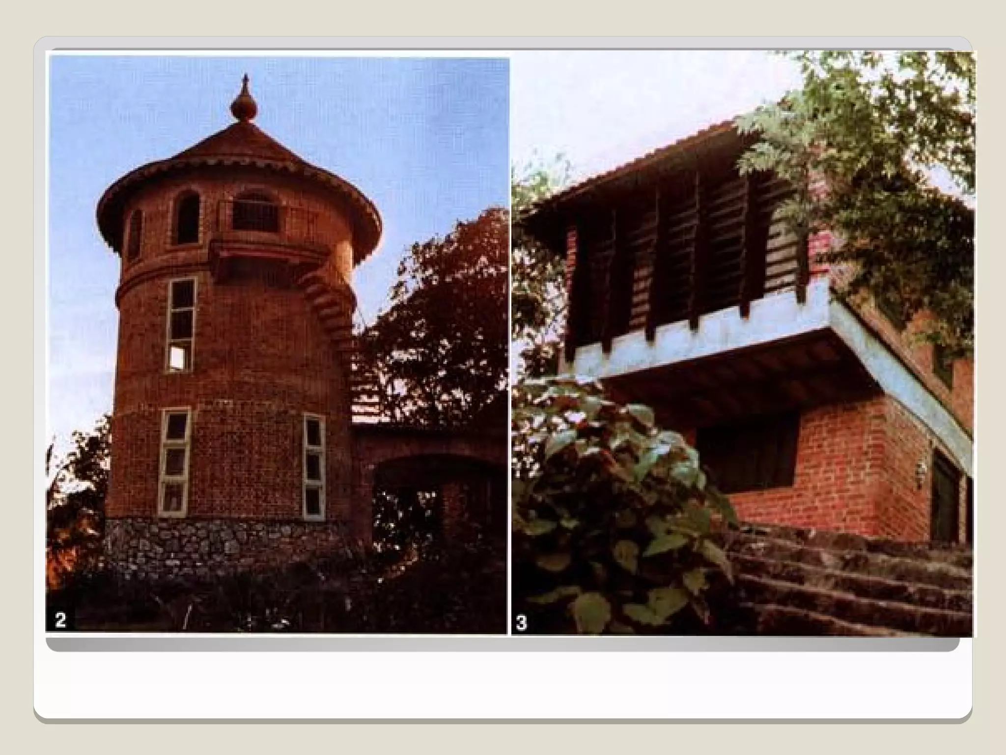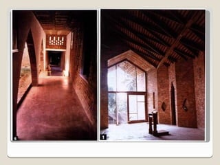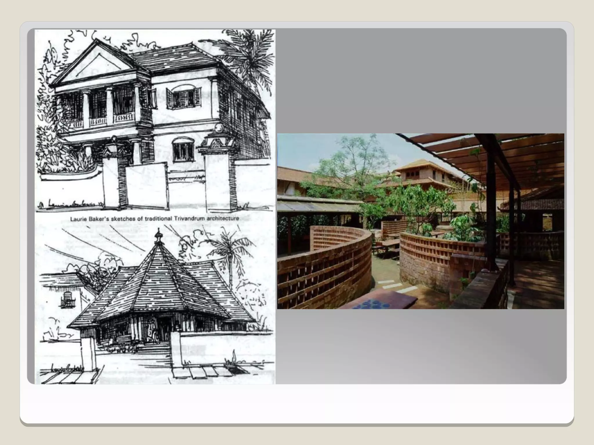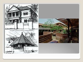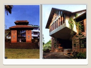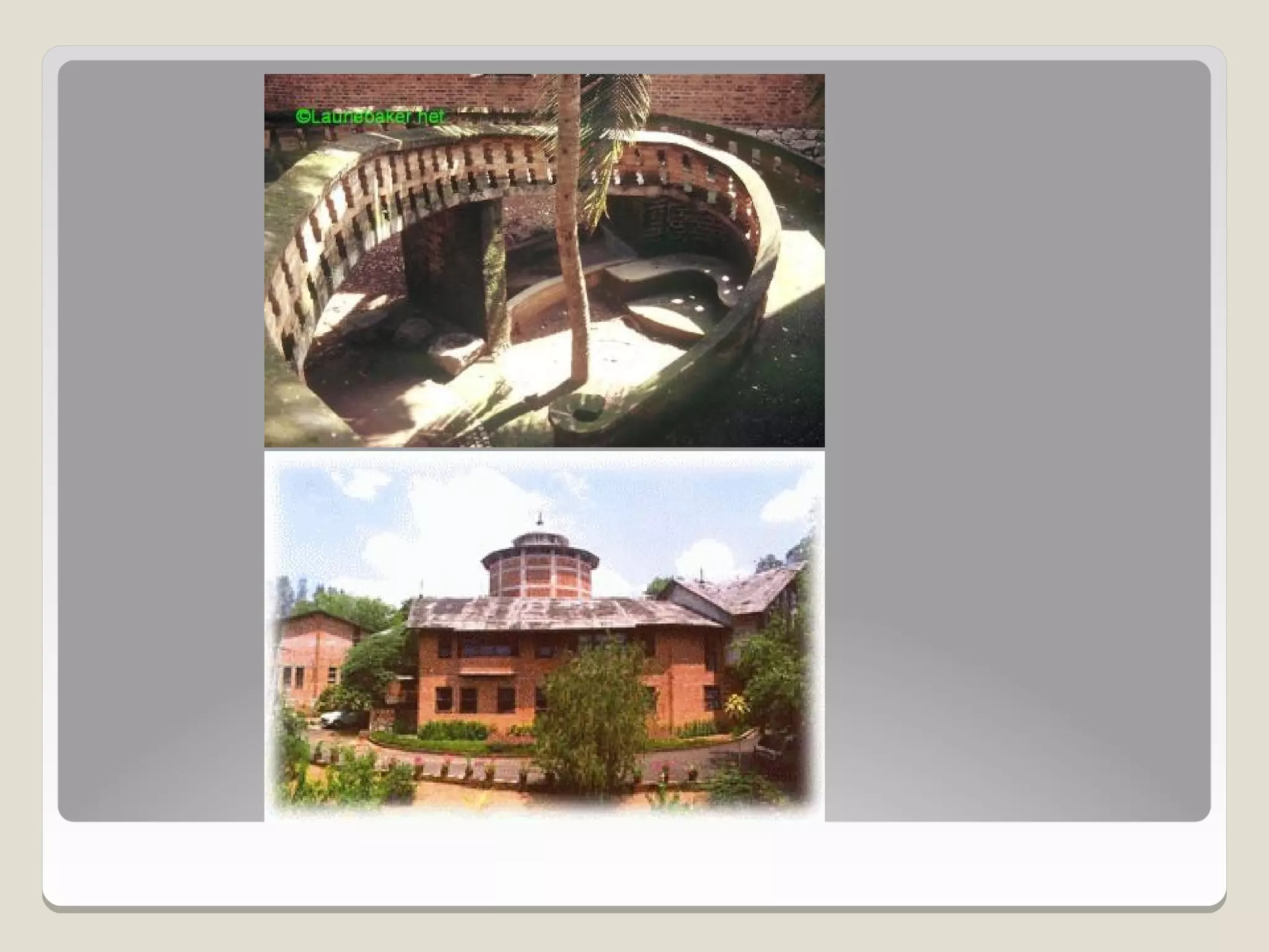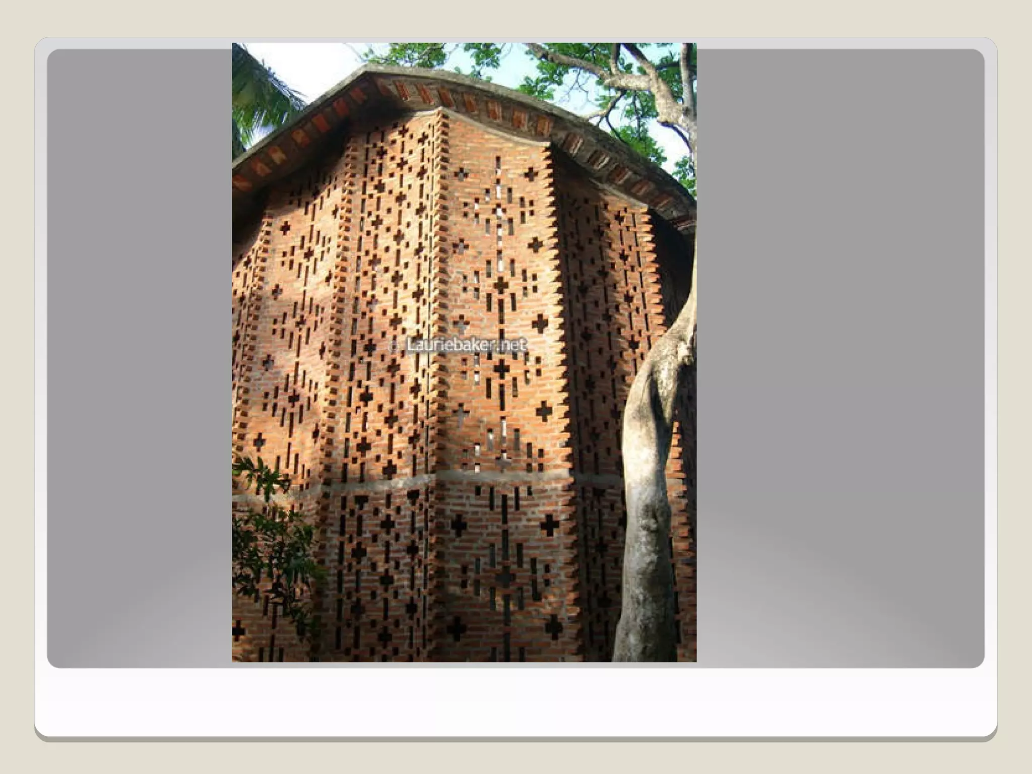Laurie Baker, an influential architect, focused on building for individuals rather than income groups and utilized local materials and traditional methods in his designs. He emphasized cost-effective techniques that not only reduced material usage but also incorporated energy-efficient concepts like arches and domes. His notable projects include the Center for Development Studies and the Loyola Chapel, showcasing innovative designs that addressed both aesthetics and functionality while promoting community involvement in housing solutions.