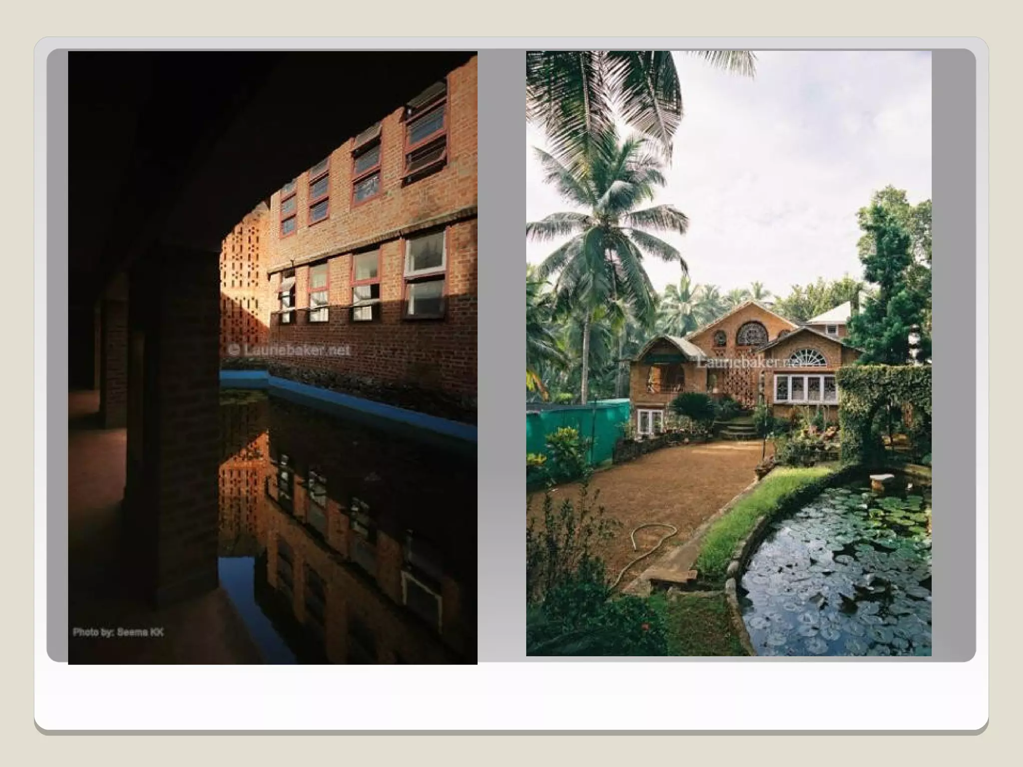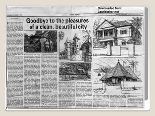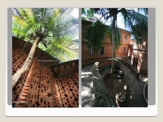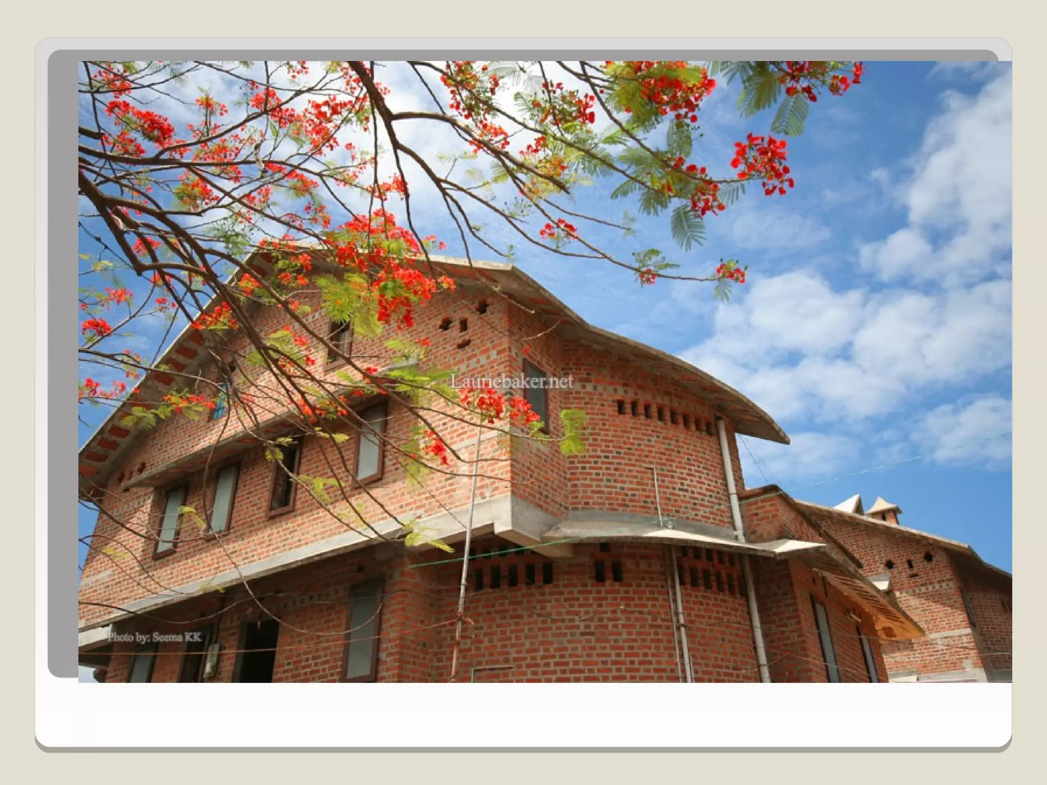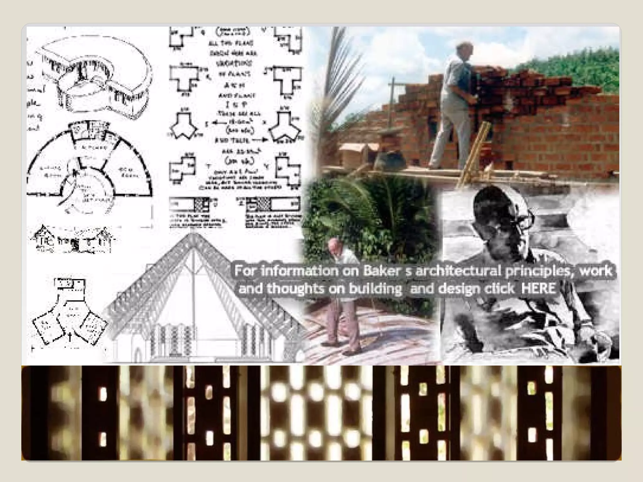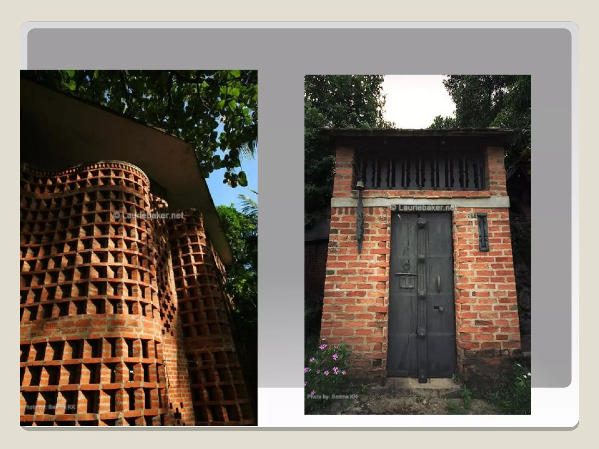 Laurie Baker, an influential architect, focused on building for individuals rather than income groups and utilized local materials and traditional methods in his designs. He emphasized cost-effective techniques that not only reduced material usage but also incorporated energy-efficient concepts like arches and domes. His notable projects include the Center for Development Studies and the Loyola Chapel, showcasing innovative designs that addressed both aesthetics and functionality while promoting community involvement in housing solutions.
