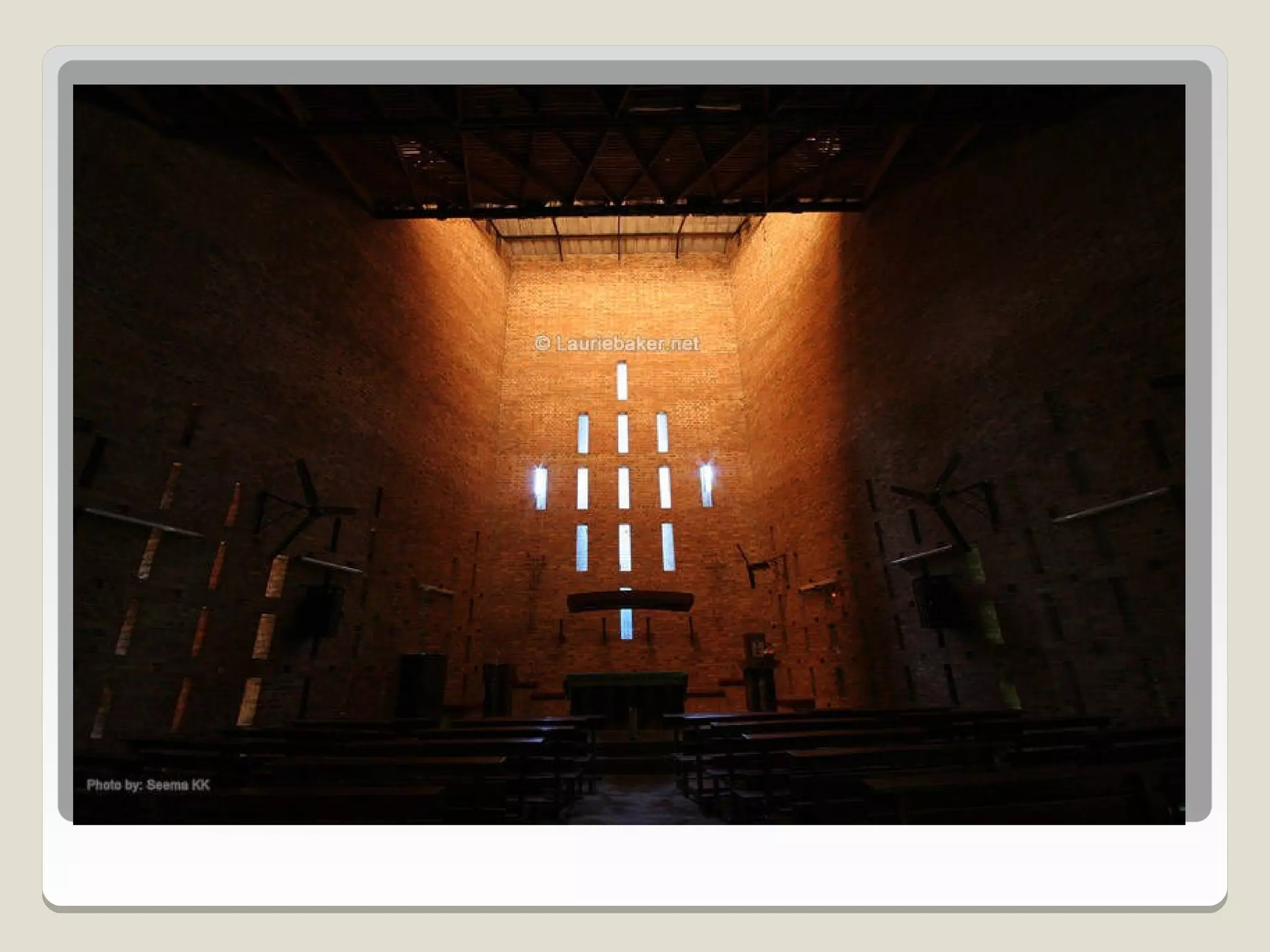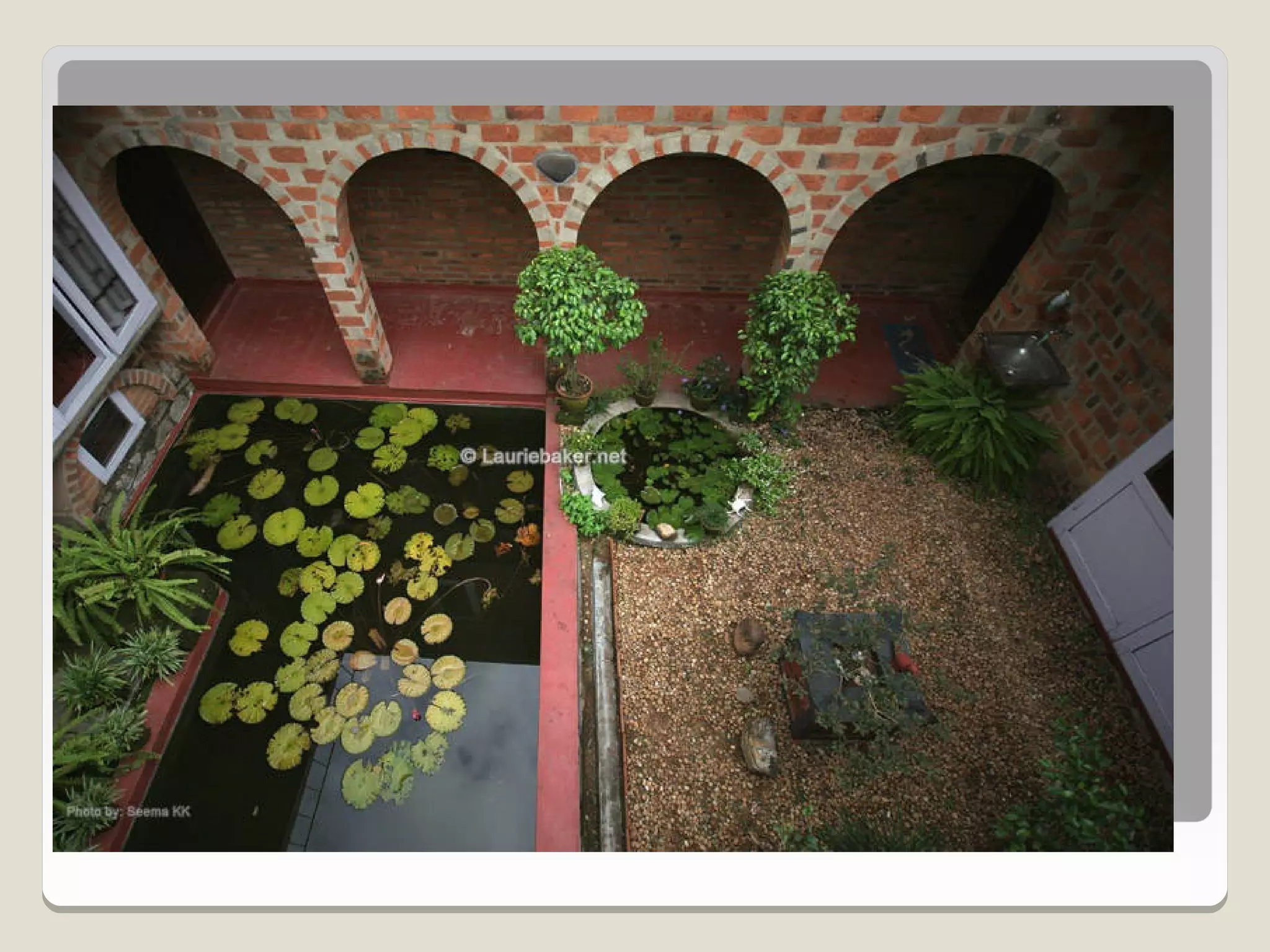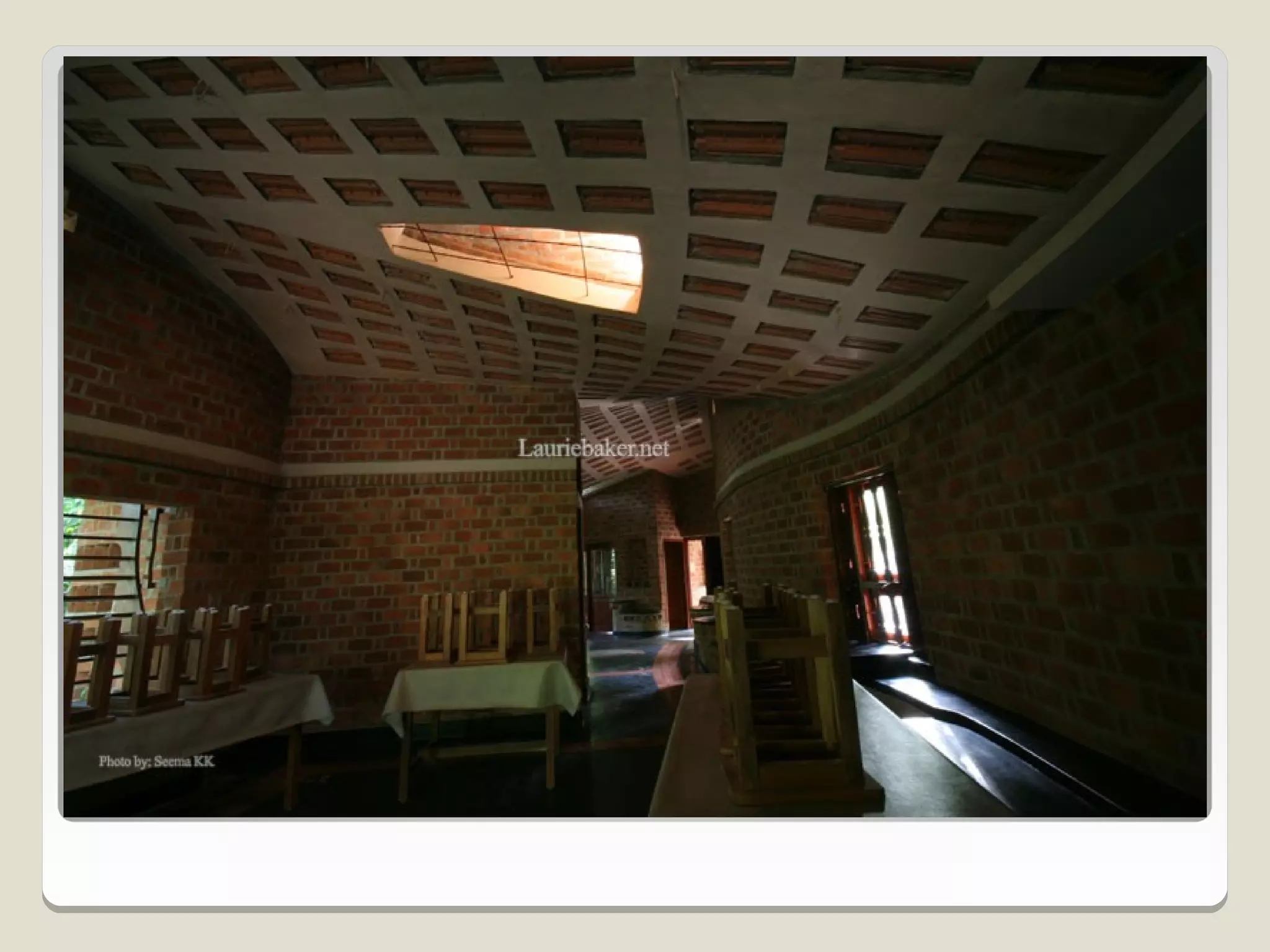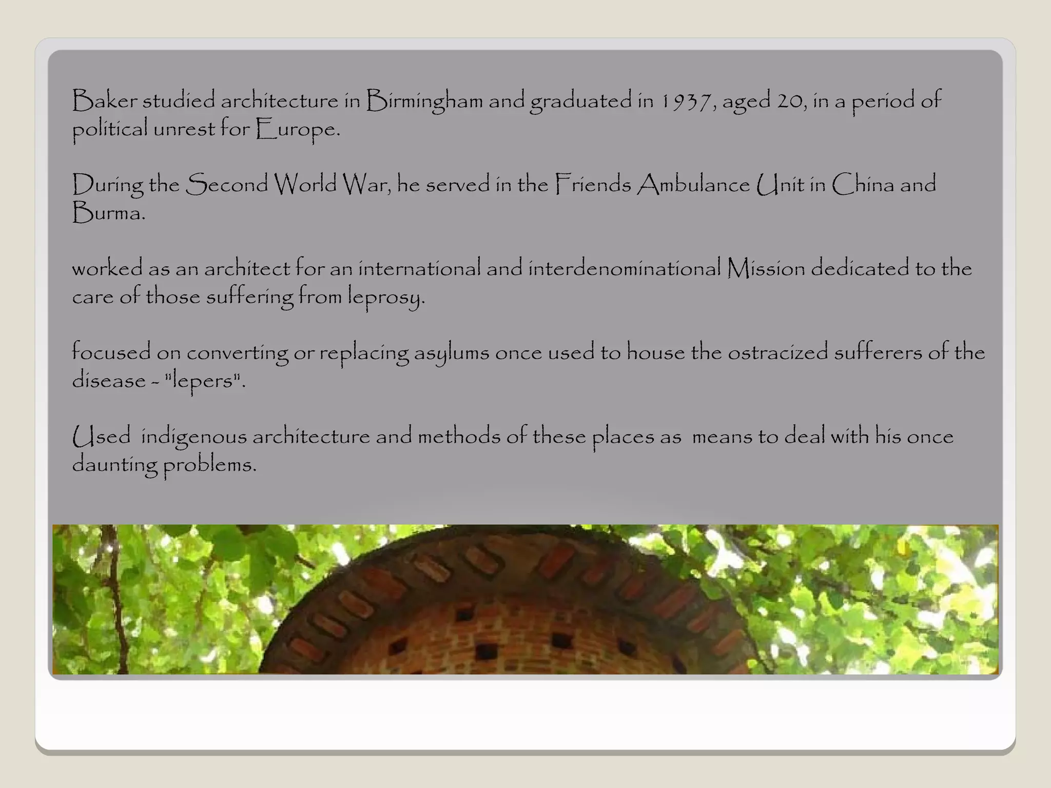 Laurie Baker, an influential architect, focused on building for individuals rather than income groups and utilized local materials and traditional methods in his designs. He emphasized cost-effective techniques that not only reduced material usage but also incorporated energy-efficient concepts like arches and domes. His notable projects include the Center for Development Studies and the Loyola Chapel, showcasing innovative designs that addressed both aesthetics and functionality while promoting community involvement in housing solutions.