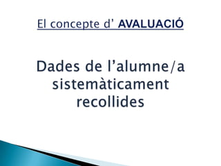 • Avaluació individual.