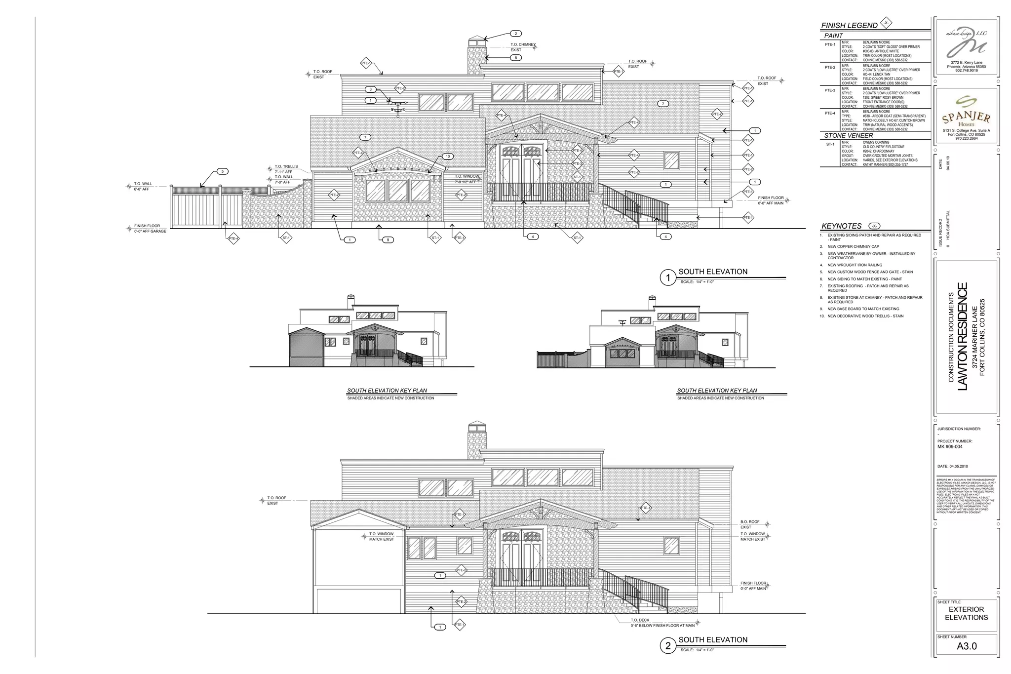 - The document provides painting specifications for the exterior of a home, including colors and locations for trim, field, doors, and natural wood accents.