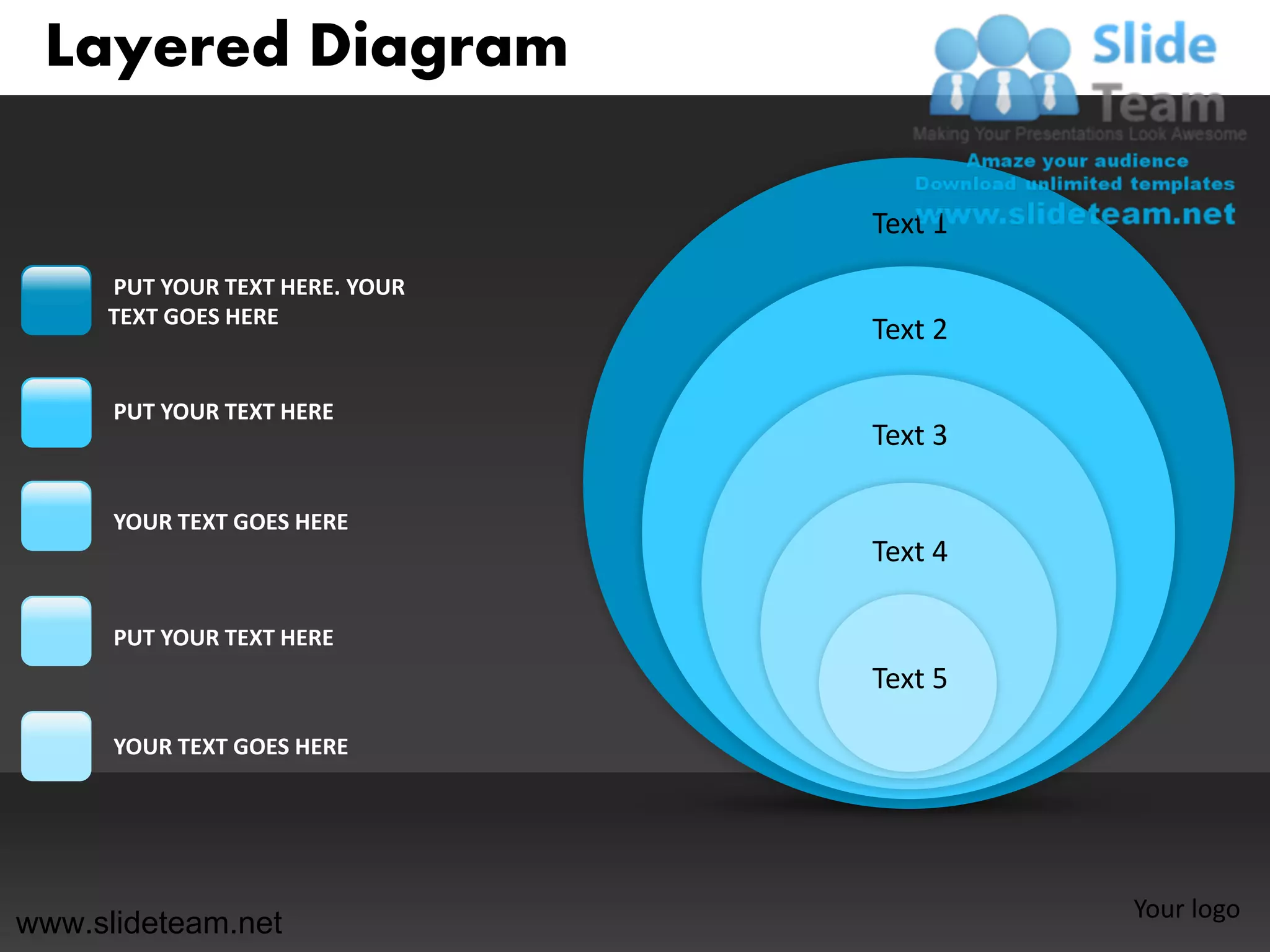 The document describes a layered diagram template that can be customized with text boxes and images on different layers. Users can edit the text, colors, sizes and positions of the elements to create their own layered diagrams. The template allows for clear communication of information through a visually engaging graphic design.