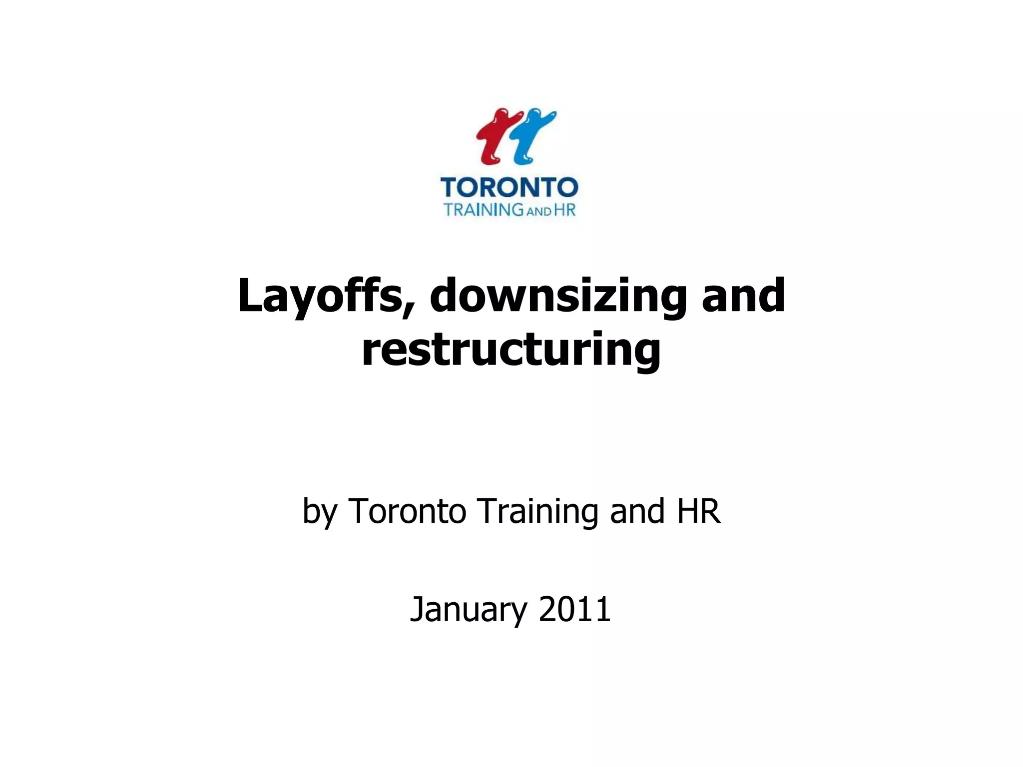 This document provides an overview of layoffs, downsizing, and restructuring. It discusses definitions, implications of poor termination practices, meeting details for terminating employees, reactions to expect, communicating with remaining employees, termination letters, downsizing effects and reducing impact, outplacement services, separation/severance policies, career motivation issues for survivors, tackling survivor syndrome, layoffs in the US, avoiding common pitfalls, and concludes with case studies and questions.