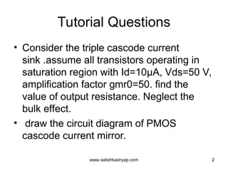 Layout of current mirror by taking some example 1. 2. Tutorial Questions