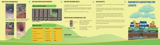 3) Rainwater harvesting involves collecting roof runoff in tanks for future use and using recharge wells to capture surface runoff and replenish groundwater. This helps address flooding issues and groundwater depletion.