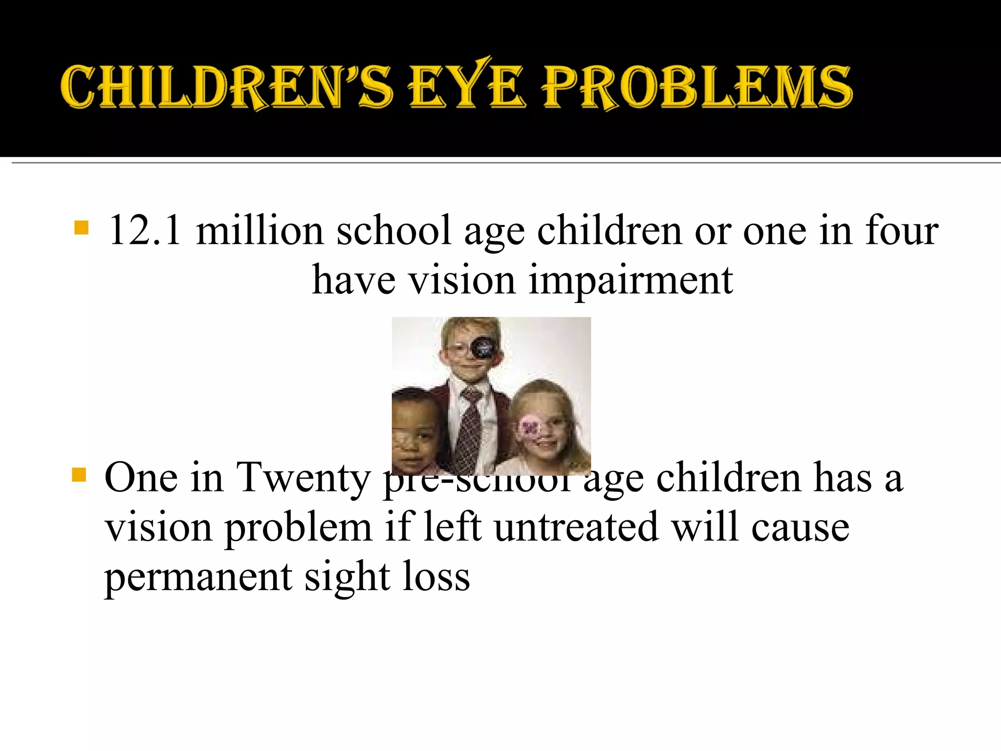 - Vision problems are common in children, with one in four school-aged children having some form of vision impairment if left untreated.