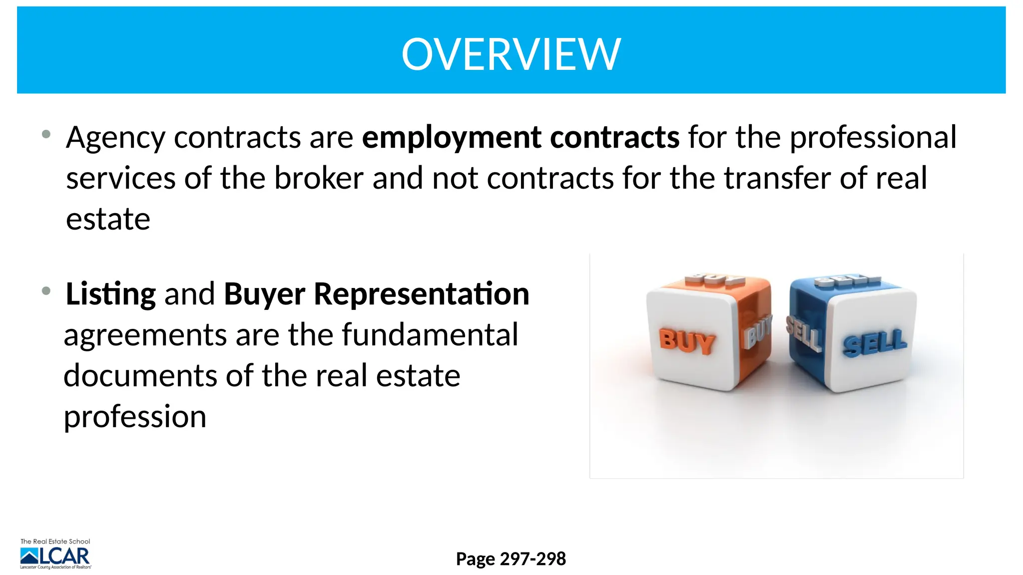 The document outlines the fundamental aspects of listing agreements and buyer representation contracts in real estate, emphasizing the necessity of written agreements that include detailed stipulations such as broker fees and services. It describes three types of listing agreements: exclusive right-to-sell, exclusive agency, and open listings, while also detailing the process of pricing properties and the importance of comparative market analysis (CMA). Additionally, it covers buyer agency agreements, specifying various types and the need for explicit terms regarding compensation and responsibilities.