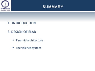 The document provides an overview of the lablynx elab architecture, a browser-based laboratory information management system (LIMS) introduced in 1997. It outlines the system's design, which includes a database, API connection layer, and customizable configurations, allowing labs to adjust it to their specific needs. Additionally, it highlights the distinction between default components and customer modifications, ensuring upgrades do not disrupt custom settings.