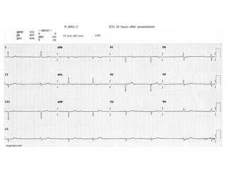 This document appears to be notes from an ECG talk that includes lab results, ABG values, and a quote from a poem by T.S. Eliot. It also mentions Wellens' syndrome and credits Dr. Smith's ECG Blog as the source. The document contains various identifiers but no clear narrative or context for the included information.