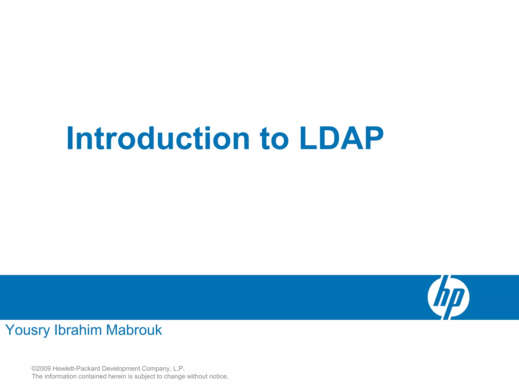 LDAP is a lightweight directory access protocol that provides access to distributed directory services over TCP/IP. It allows directories like Active Directory to be accessed and managed in a standard way without transactions or rollbacks. LDAP uses a hierarchical tree structure and entries with distinguished names and attribute-value pairs to represent information that can then be queried, added, modified, and deleted through LDAP operations. Java applications can use JNDI to connect to and search an LDAP directory by binding with credentials and issuing search requests with filters.