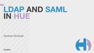 This document provides an overview of LDAP and SAML integration in Hue. It discusses how Hue supports authentication against LDAP directories for user management and authentication. It also discusses how Hue supports SAML single sign-on by acting as a service provider that can authenticate against identity providers. Key challenges around SAML integration like complex configuration and dependencies on external libraries are also summarized.
