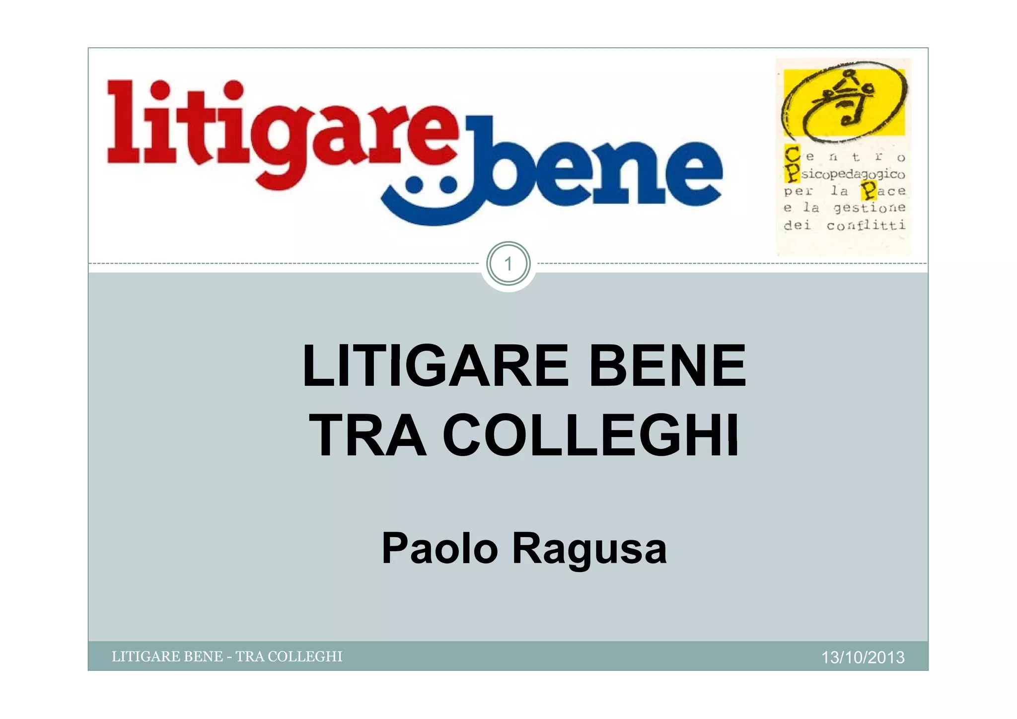 1 LITIGARE BENE TRA COLLEGHI PaoloRagusa LITIGARE BENE - TRA COLLEGHI 13/10/2013