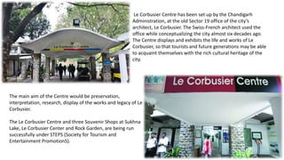 The Le Corbusier Centre in Chandigarh displays and exhibits the life and works of the Swiss-French architect Le Corbusier, who conceptualized the city of Chandigarh almost six decades ago. The Centre is located in Le Corbusier's original office building from when he designed the city and aims to preserve, interpret, research, and display his works and legacy. It contains archival documents, plans, maps, models, photographs and furniture from Le Corbusier's time in Chandigarh to acquaint visitors with the city's rich cultural heritage and the architectural spirit of its Modernist design.