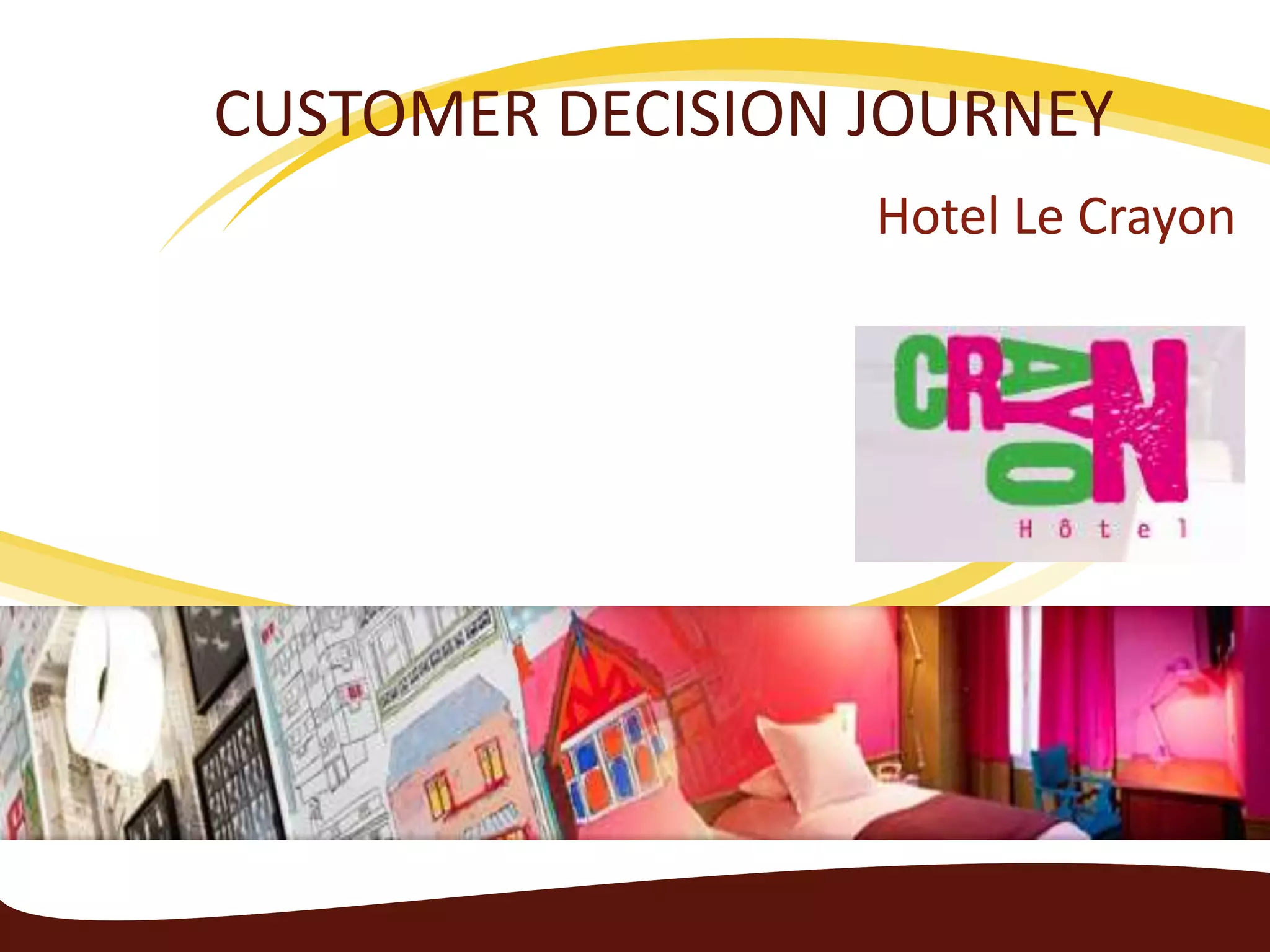 Hotel Le Crayon is a 3-star boutique hotel located in Paris near the Louvre museum. It offers uniquely decorated rooms on each floor with different wallpaper designs signed by artist Julie Gauthron. The hotel aims to provide a home-like atmosphere through creative decor like an honesty bar, Scandinavian furniture, and walls where children can color drawings. It targets business travelers, couples, families, artists, and other art lovers seeking a different hotel experience.