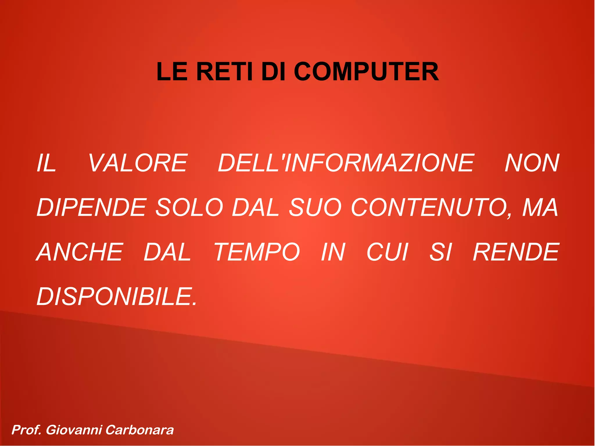 Il documento descrive le reti di computer, evidenziando l'importanza del tempo di disponibilità dell'informazione e le componenti necessarie per la comunicazione tra i computer. Vengono illustrate le diverse tipologie di reti (LAN, WLAN, MAN, WAN, GAN) e le relative topologie, insieme ai dispositivi di rete come hub, router e firewall. Infine, si approfondisce la gestione degli indirizzi IP e il sistema DNS, spiegando le classi di indirizzi e la loro utilità.