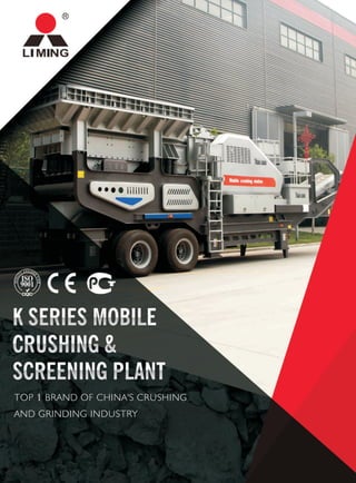 The document describes a new mobile crushing and screening plant developed by LiMing Heavy Industry to meet consumer demands. The K Series plant can be applied in various industries such as mining, construction, and recycling. Compared to previous fixed and mobile plants, it offers more reliable performance, complete functions, and higher practicality. The plant's crushing and screening abilities allow it to operate more efficiently at a higher level.