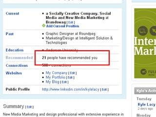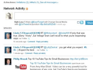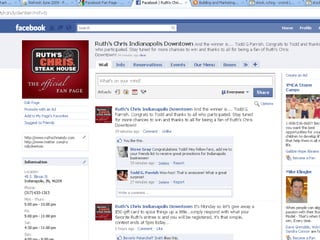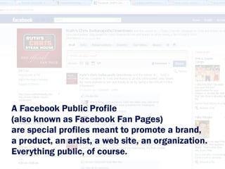 The document discusses 5 steps to building online relationships through social media: 1) be authentic in your interactions, 2) listen to people and respond genuinely to them, 3) ask genuine questions of others to start conversations, 4) share interesting content to engage others, and 5) use Facebook ads and region-based targeting to promote your business. It also provides tips for using LinkedIn to grow your professional network and generate leads.
