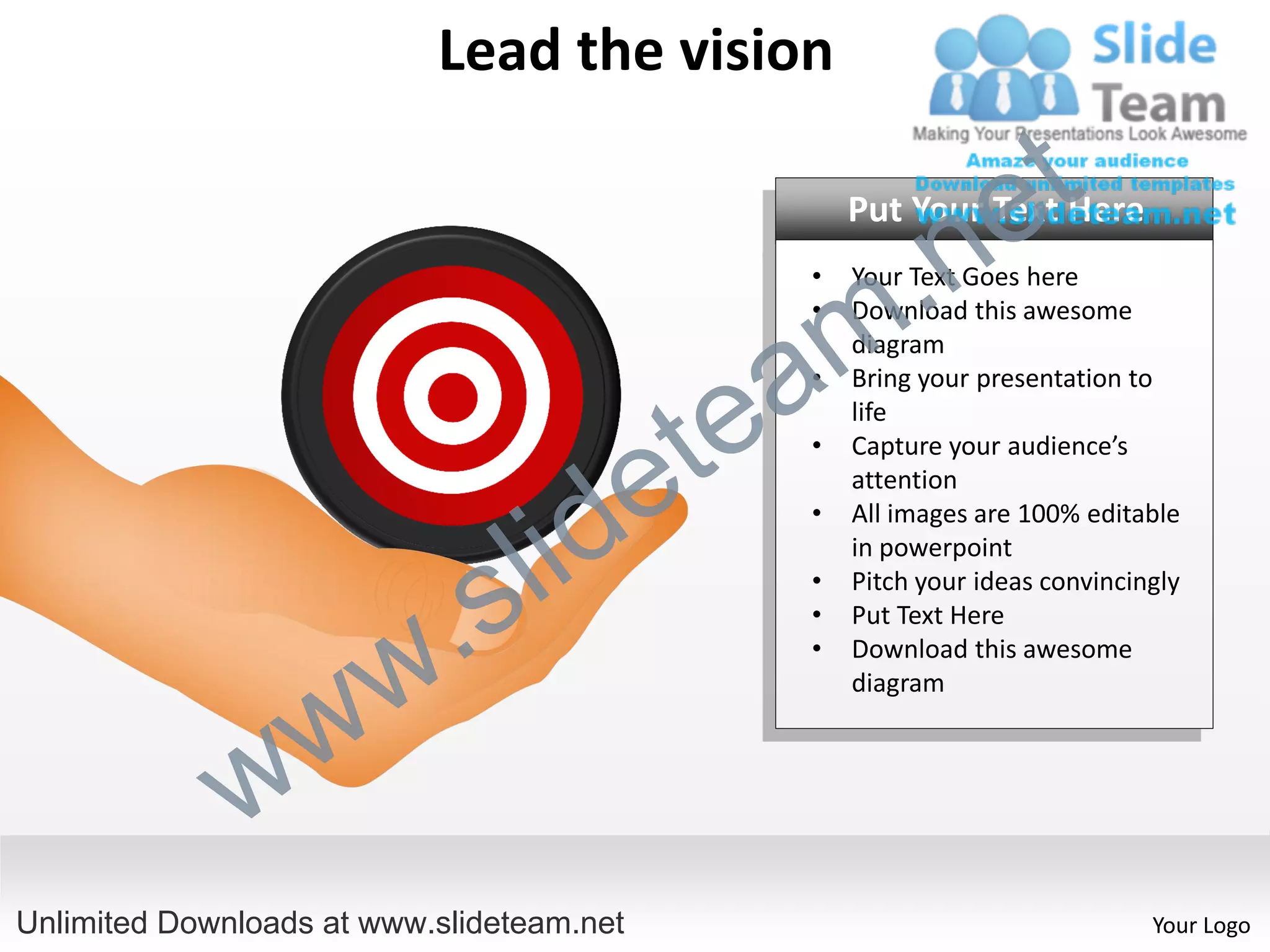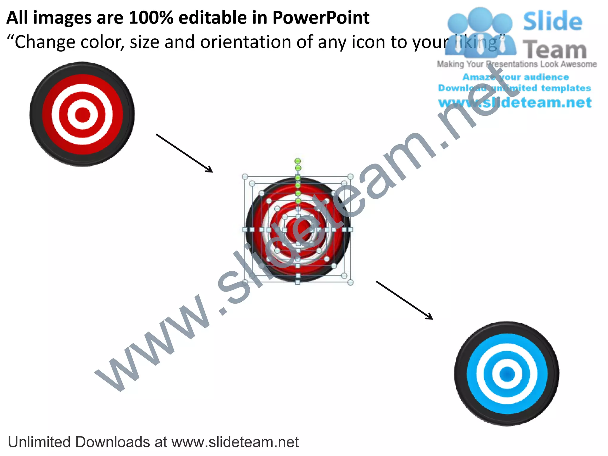 The document encourages using these editable diagram elements to pitch ideas convincingly in presentations.