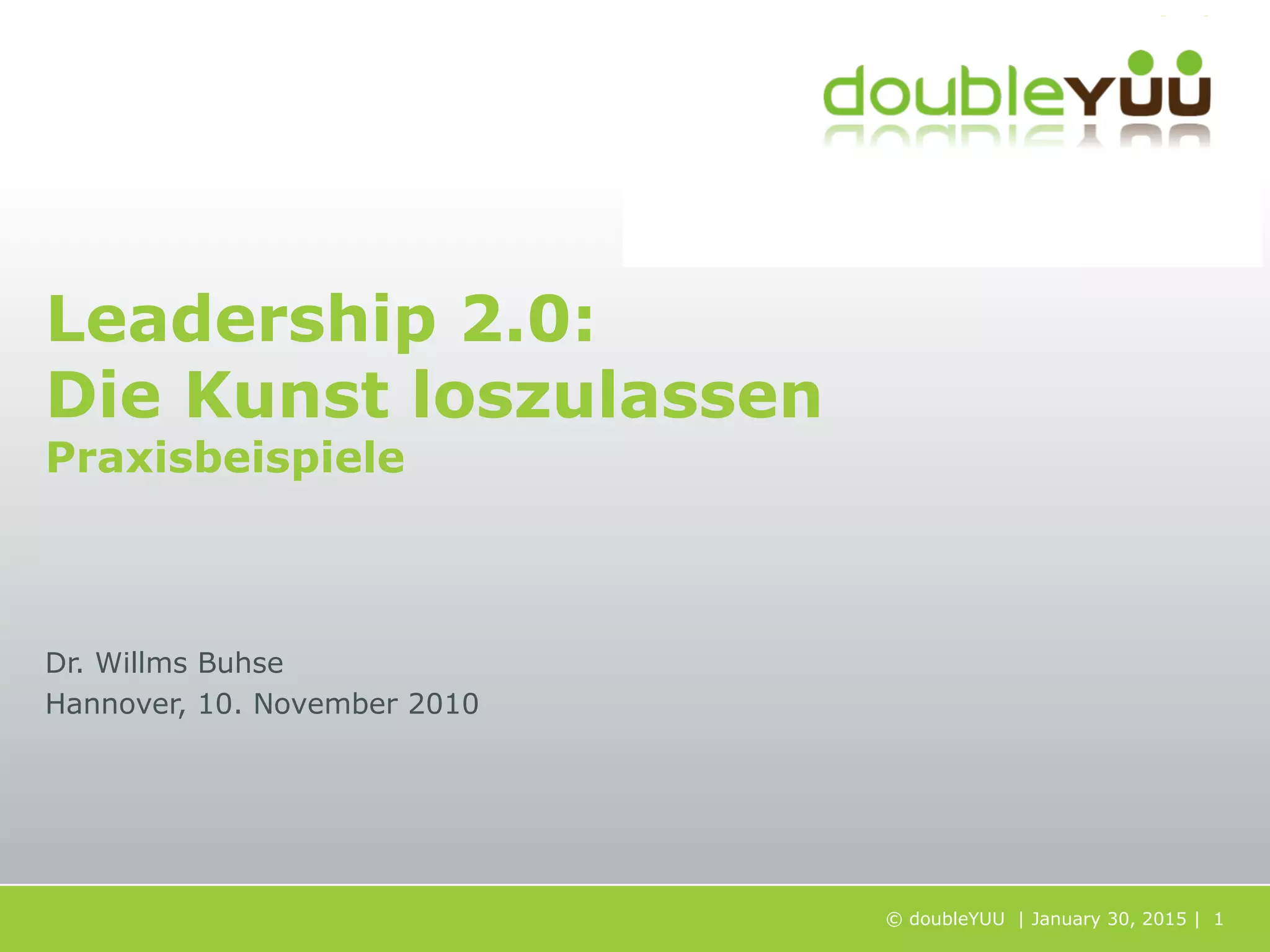 This document discusses leadership approaches and examples of giving employees more freedom and autonomy. It provides examples of companies like CoreMedia that have adopted self-organizing approaches. It also discusses balancing hierarchies with networks, setting goals and values as a framework, and allowing for creative deviations from the norm.