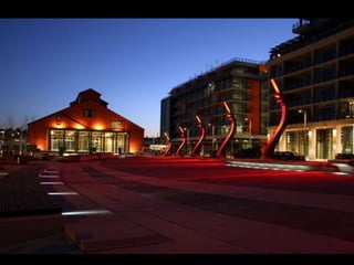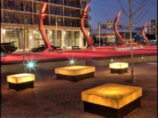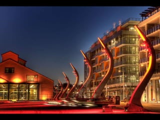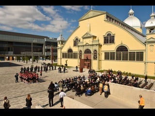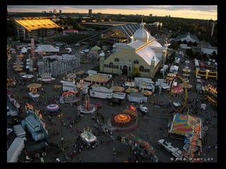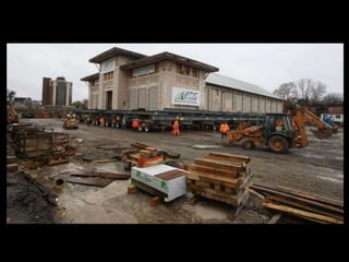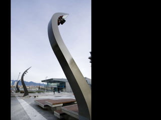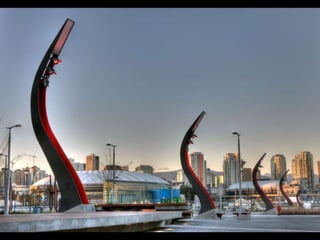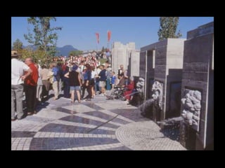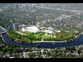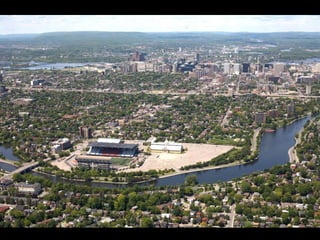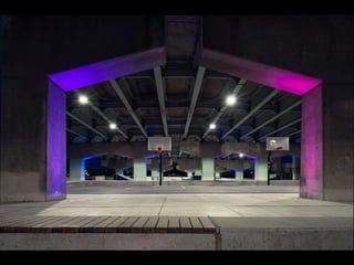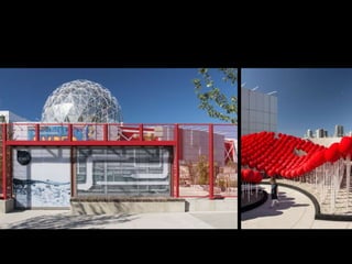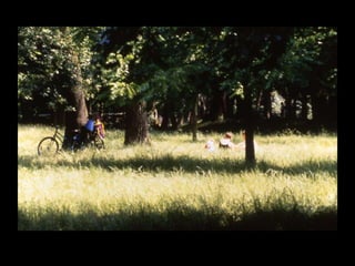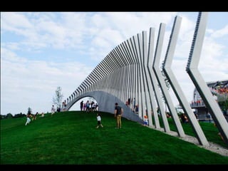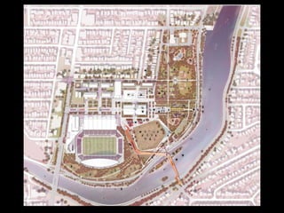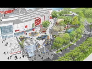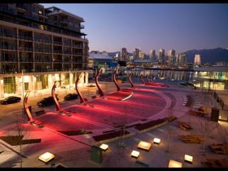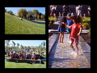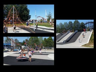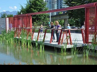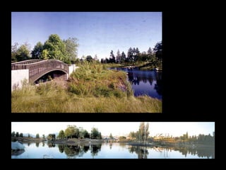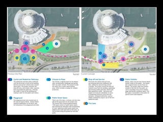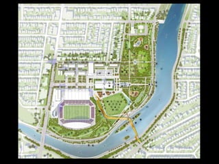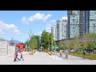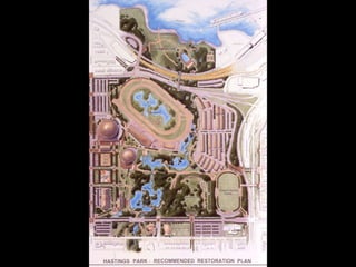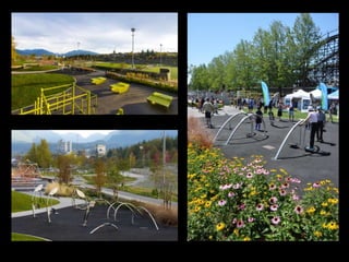 This document provides an overview of several parks projects in Vancouver from August 2018, including Ken Spencer Science Park, Underpass Park, Southeast False Creek Plaza, Hastings Park, and Moodyville Park. It discusses the design and features of Hastings Park, including its history and transformation over time with the addition of areas like Empire Fields, Windermere Hill, and the Italian Rain Gardens. The document also presents images showing Empire Fields before and after the installation of a temporary stadium.