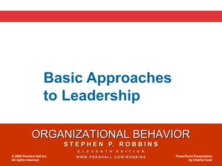 The document summarizes several theories of leadership, including: trait theories, which propose that certain personality traits differentiate leaders from non-leaders; behavioral theories, which argue that leadership can be learned through behaviors; contingency theories like Fiedler's model that leadership effectiveness depends on matching leader style to the situation; and situational theories like path-goal theory that the leader's role is to help followers achieve goals. It also discusses leader-member exchange theory and Vroom and Yetton's leader-participation model.