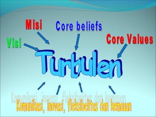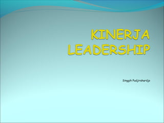 Dokumen tersebut membahas tentang kinerja kepemimpinan dan bagaimana menjadikan organisasi sebagai lembaga yang berfokus pada misi, diarahkan visi, didorong filosofi, dan berbasis nilai. Tiga hal penting yang dibahas adalah pentingnya memiliki misi, visi, dan keyakinan inti yang jelas dalam organisasi, serta kemampuan leader untuk menumbuhkan kepemimpinan potensial seluruh anggota organisasi.