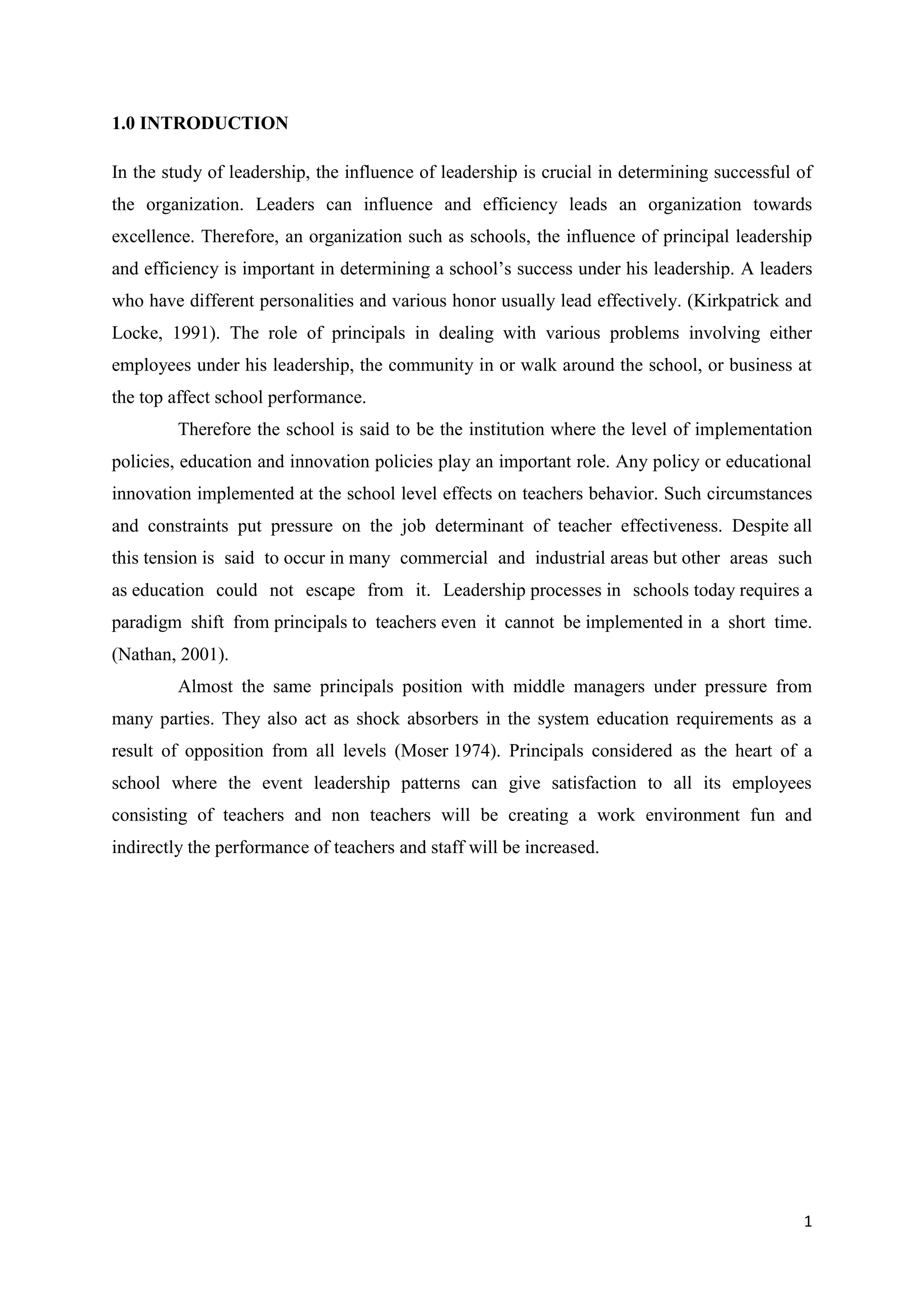 1. The document discusses leadership in schools and defines different leadership styles.