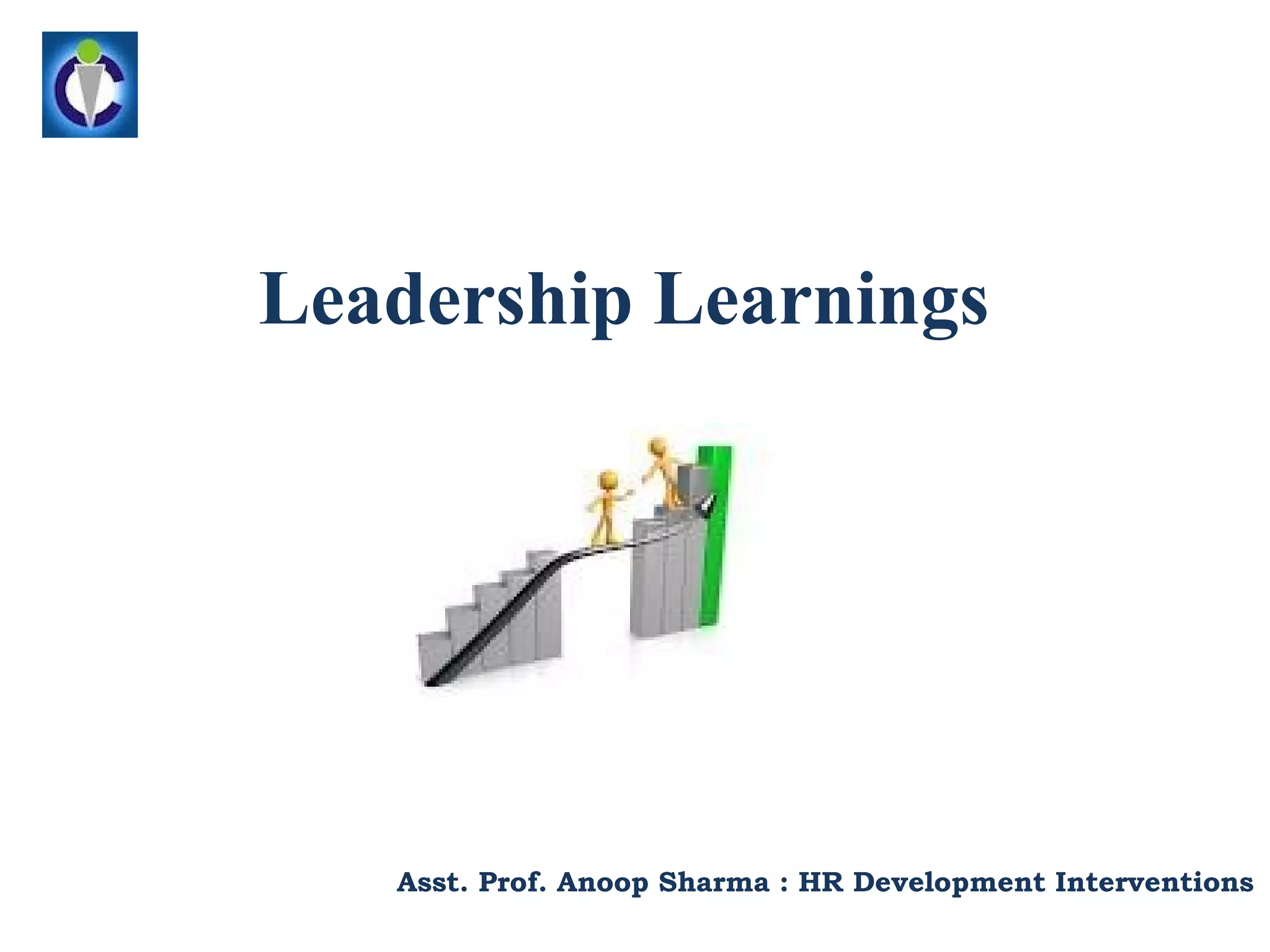 1. Leadership is an influential process where an individual motivates a group to achieve common goals. Effective leaders develop people, build teams, and communicate vision.