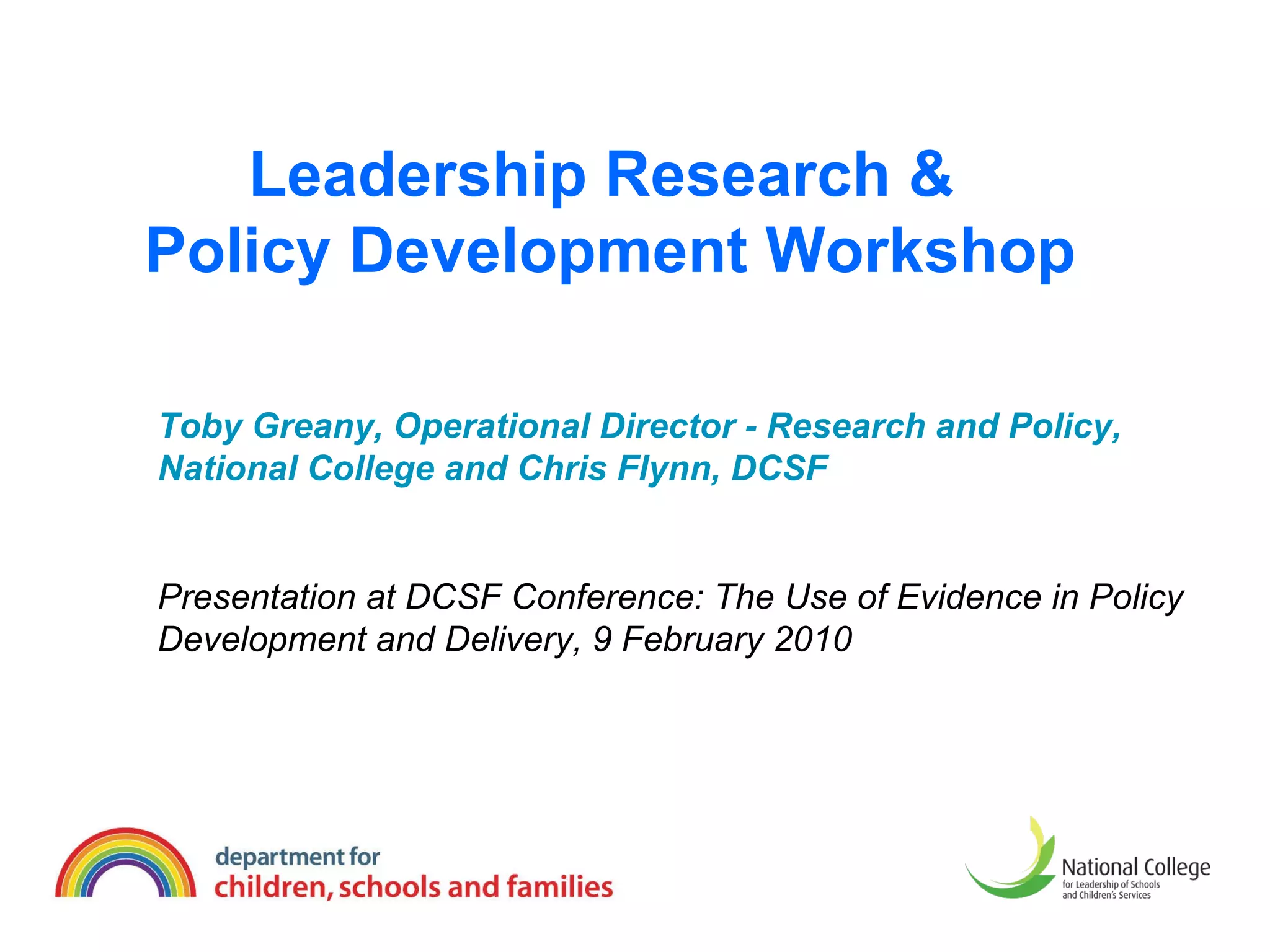 The document outlines the importance of effective leadership in education, highlighting its critical role in improving student outcomes and the challenges of succession planning due to an aging leadership workforce. It discusses various research initiatives aimed at understanding and enhancing school leadership quality, deployment, and development, while also emphasizing the need for a collaborative approach among schools. Additionally, it addresses the demographic shifts in school leadership and the implications for future leadership provisioning in children’s services.