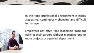 This document describes an engineering project management training course offered by Tonex. The course aims to teach participants how to manage engineering projects effectively through various modules that cover the project lifecycle, planning, scheduling, risk management, cost estimation and more. The training is suited for project managers, engineers and managers involved in multi-disciplinary engineering projects. Upon completion, participants will be able to apply key project management skills to lead projects through technical assessments and obtain necessary approvals.