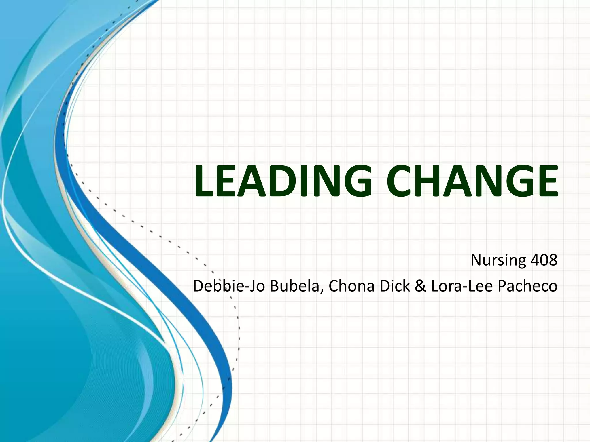 The document outlines 8 key elements to leading successful organizational change in healthcare. The elements are: 1) developing a vision for change, 2) focusing on the change process, 3) analyzing who needs to respond to change and what barriers exist, 4) building partnerships between physicians and administration, 5) creating a culture of continuous commitment to change, 6) ensuring change begins with leadership, 7) ensuring change is well communicated, and 8) building in accountability for change. Barriers to change include resistance from those unprepared for or unaware of changes, as well as nursing shortages that leave nurses without energy to consider changes. Partnerships, education, tools like EMRs and telehealth, and nurse practitioners can help create commitment