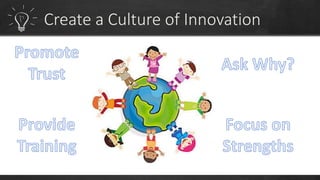 To have a sustainable innovation strategy, organizations should focus on process improvement and continuous innovation by building on their current strengths to develop new products and services, as well as focusing on improving existing business processes. They should also advocate for a culture of innovation, understand the role of technology, and create an innovation program to identify pain points and challenges to drive the development of innovative solutions.