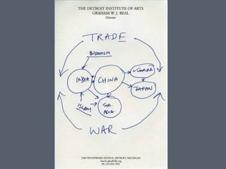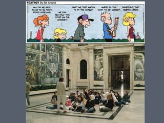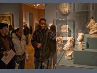 The document discusses the evolution of American art, particularly how the Ashcan School, led by Robert Henri, shifted the focus from 'art for art's sake' to themes reflecting urban life. It also describes the transformation of the Oakland Museum of California, highlighting its recent renovations and strategic plans aimed at enhancing visitor engagement and transitioning to an independent non-profit. The timeline details significant milestones from its physical transformation starting in 2007 to the opening of new galleries in 2013.