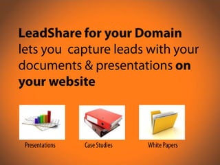This document discusses LeadShare, an option to syndicate content on Slideshare.com. It allows sharing presentations and documents on Slideshare which can generate leads. Interested users can contact Slideshare by filling out a form to learn more about LeadShare and how to get started sharing content today.