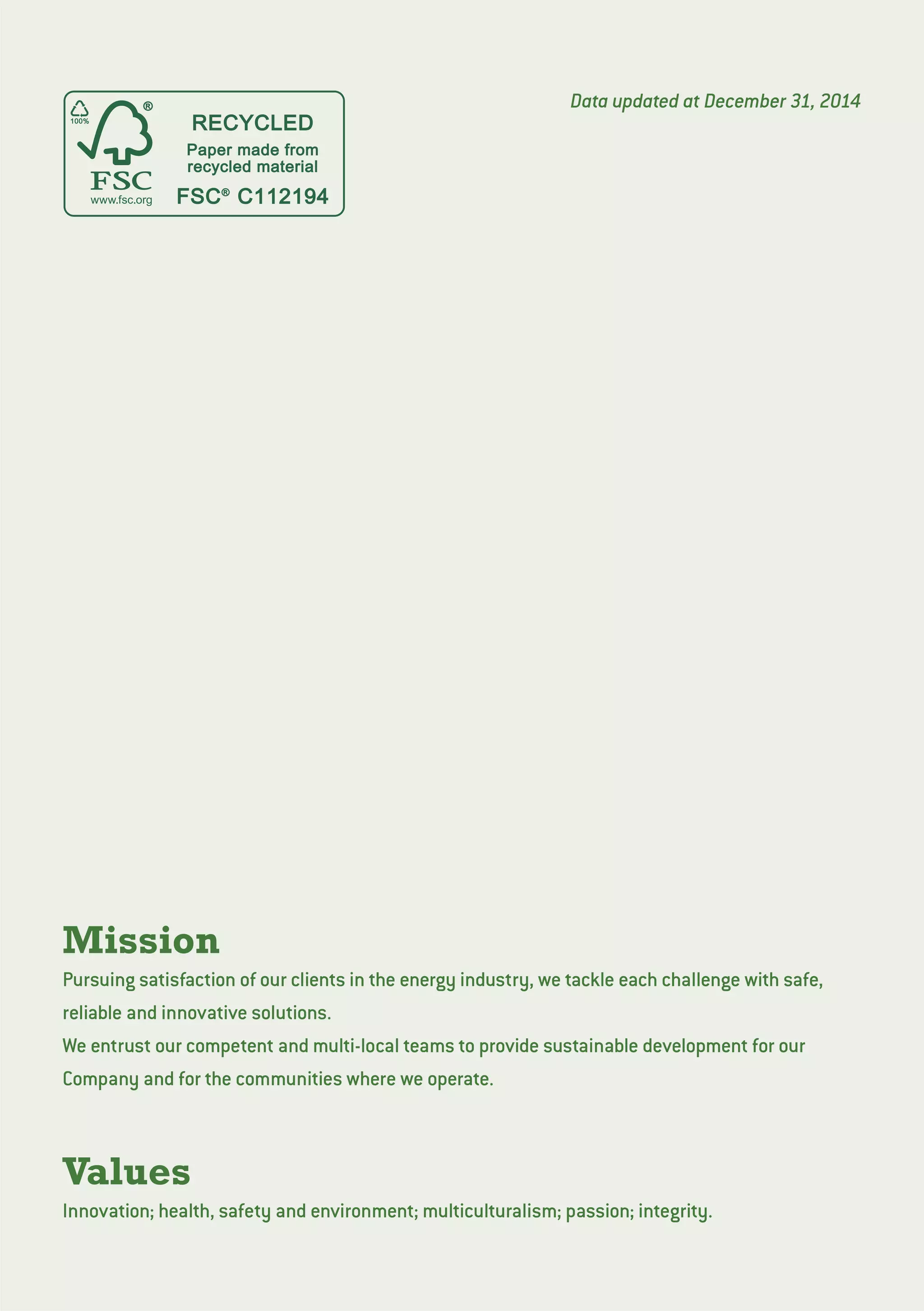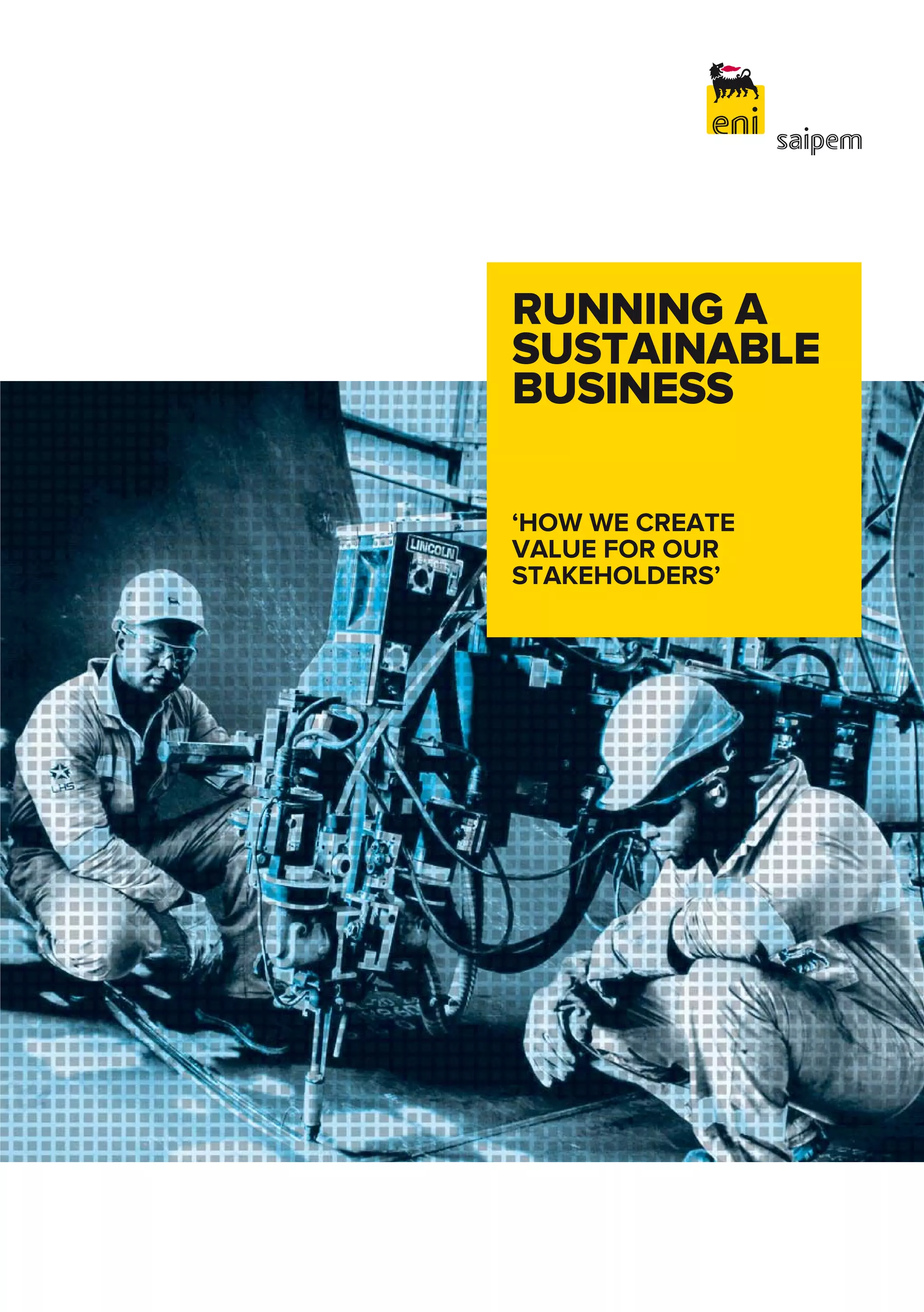 Saipem is a world leader in engineering, procurement, construction and installation of projects in the energy and infrastructure sectors. The document discusses Saipem's commitment to running its business sustainably by integrating sustainability into its operations and managing a wide range of social and environmental issues responsibly. It provides an overview of Saipem's 2014 performance and key results in business ethics, health and safety, local communities, environmental protection and other areas of sustainability.